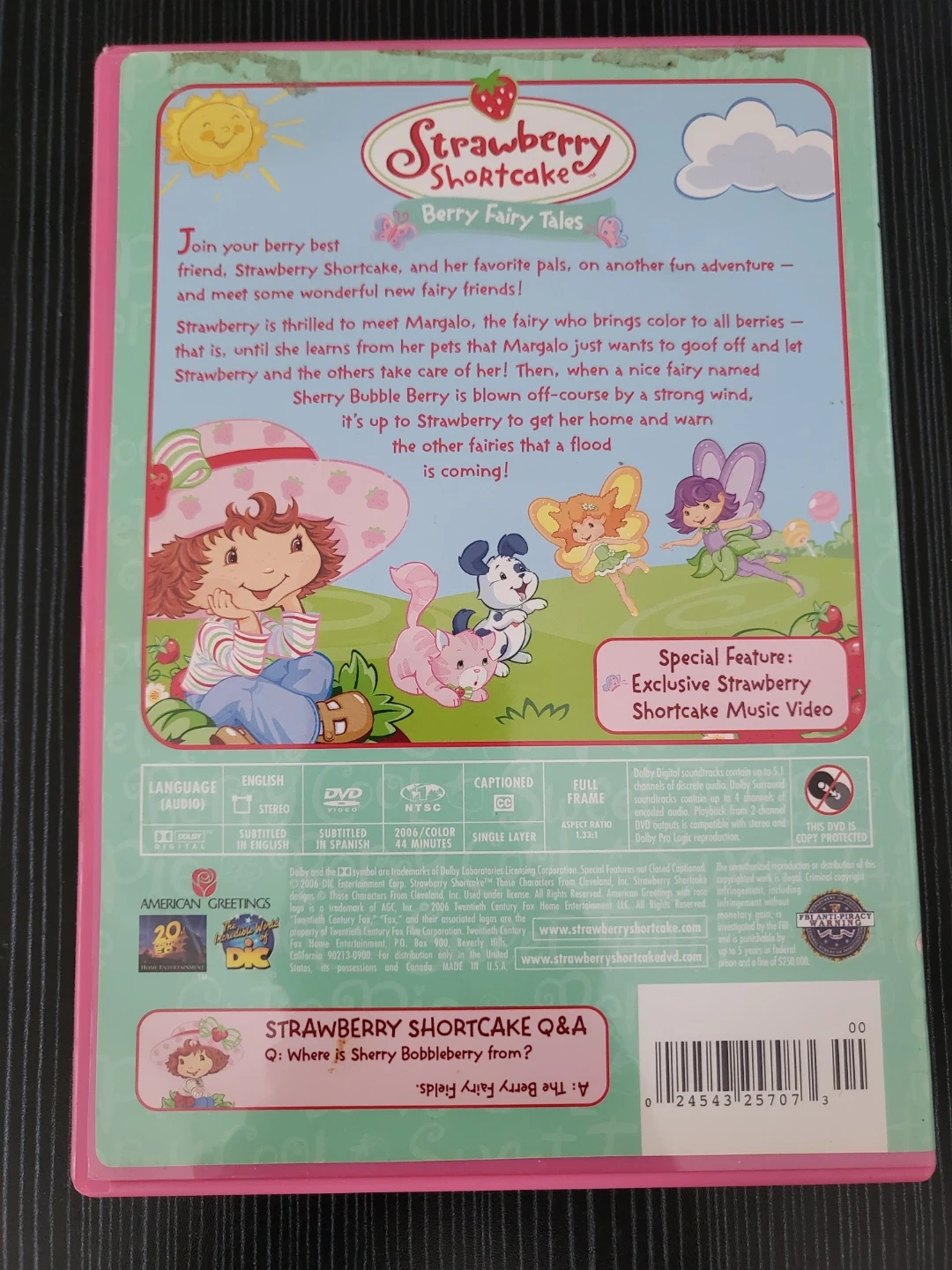 Selling a Strawberry Shortcake Berry Fairy Tales DVD! Join Strawberry and her fairy friends on an adventure. This DVD includes an exclusive Strawberry Music Video as a special feature.