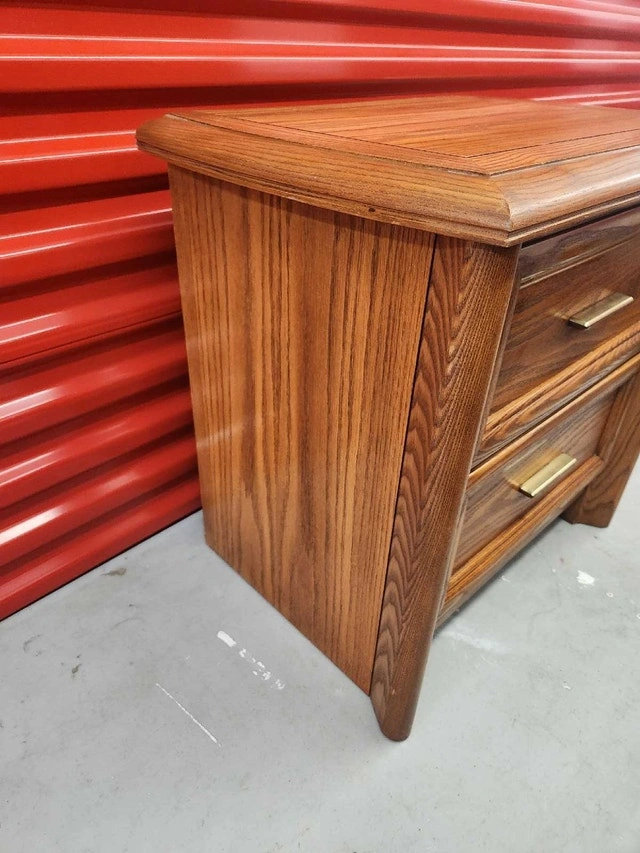This nightstand features a sturdy build and two spacious drawers, perfect for bedside storage. It's a used piece, showing some signs of wear but remains fully functional and adds a touch of warmth to any bedroom decor. Approximate dimensions: Height: 25 inches, Width: 22 inches, Depth: 17 inches. If this ad is up, it's still available!
