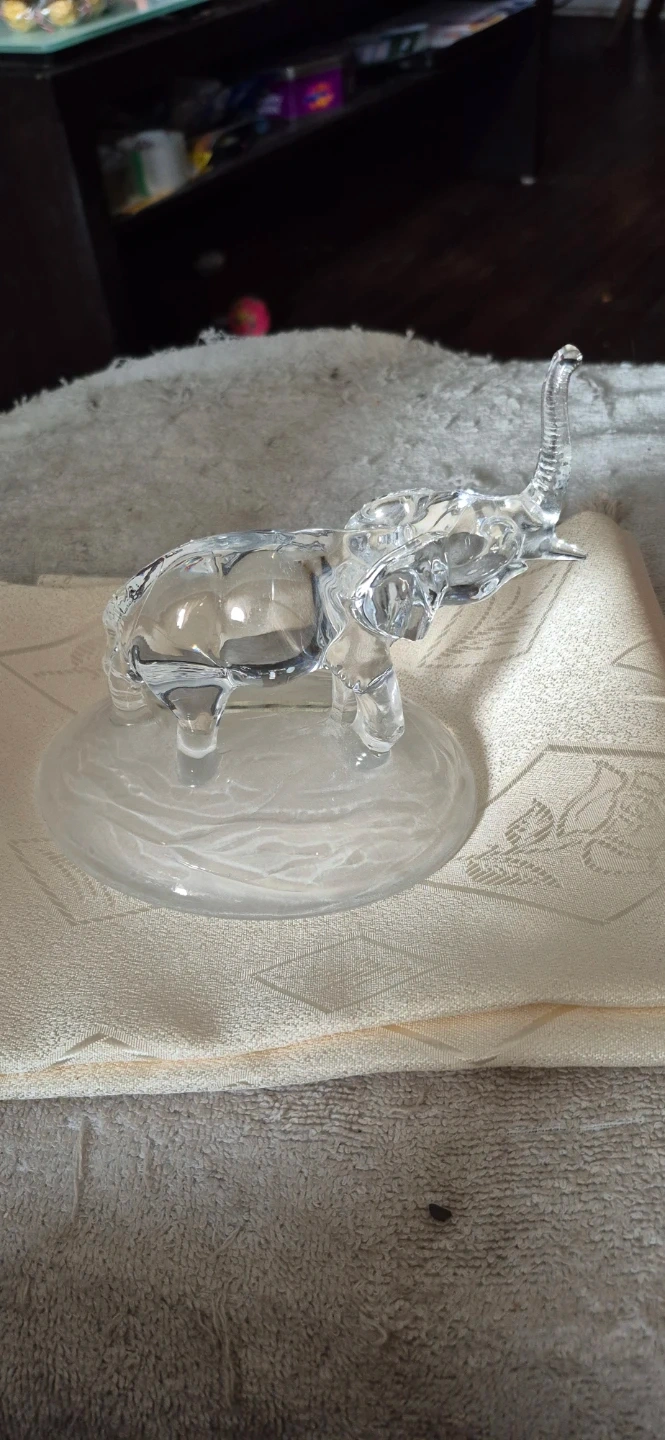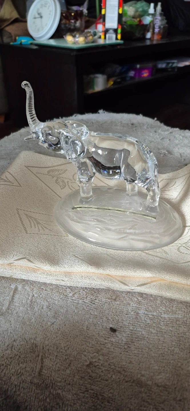 Here's a lovely crystal elephant figurine! It's in great shape and would look wonderful on a shelf or desk. Perfect for adding a touch of elegance to any room