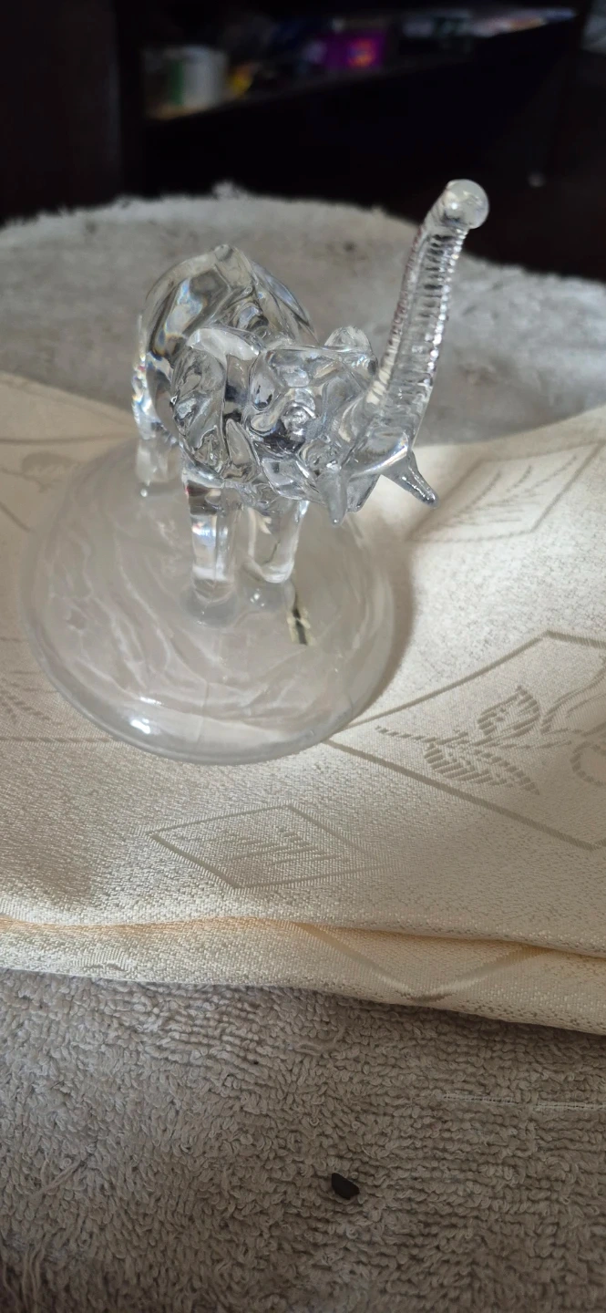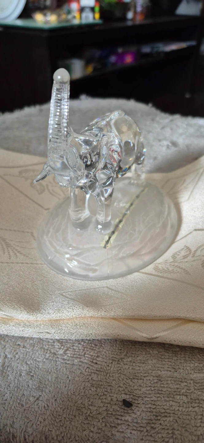 Here's a lovely crystal elephant figurine! It's in great shape and would look wonderful on a shelf or desk. Perfect for adding a touch of elegance to any room