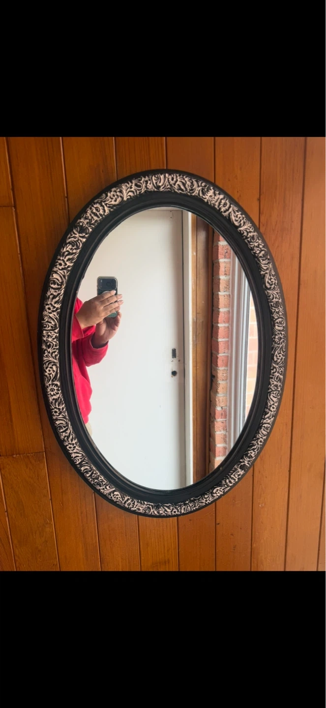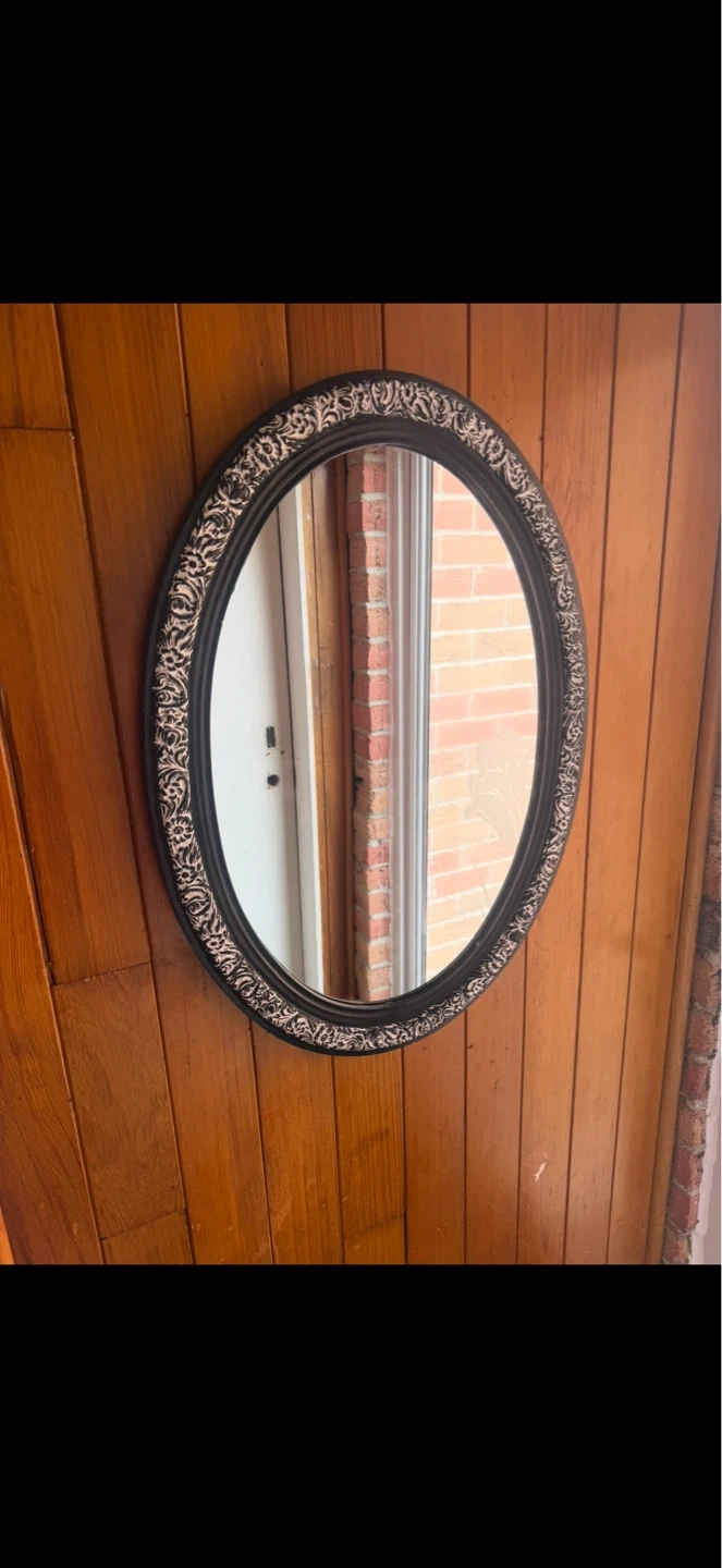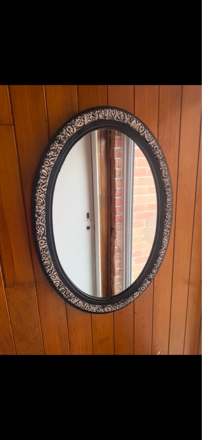 Beautiful White on Black Oval Mirror,