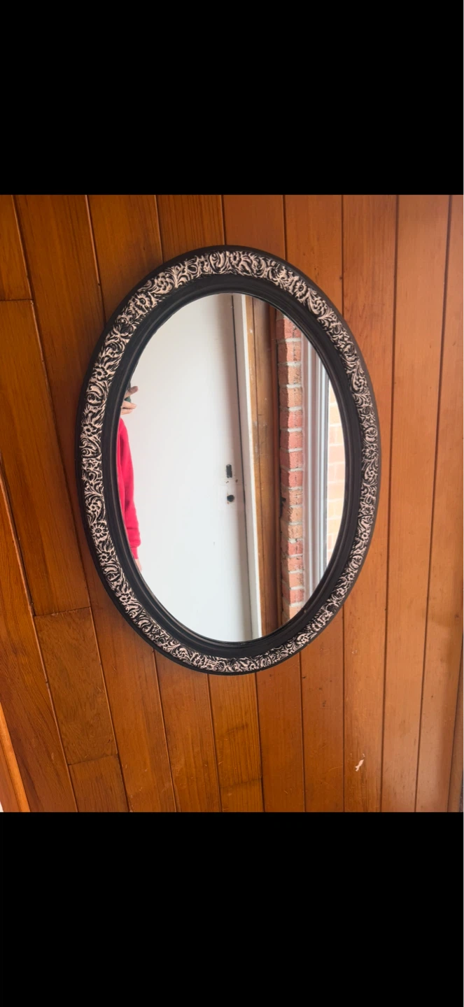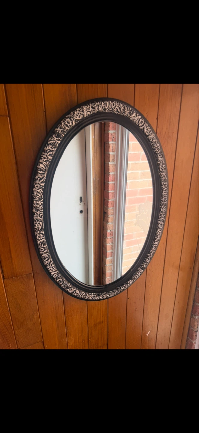 Beautiful White on Black Oval Mirror,