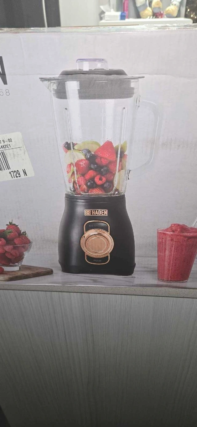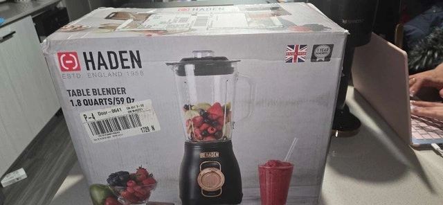 Brand new, unopened box. Haden Blender with Glass Jar. I bought it to match my decor of black and rose gold but never used it. I originally paid $200 for it.