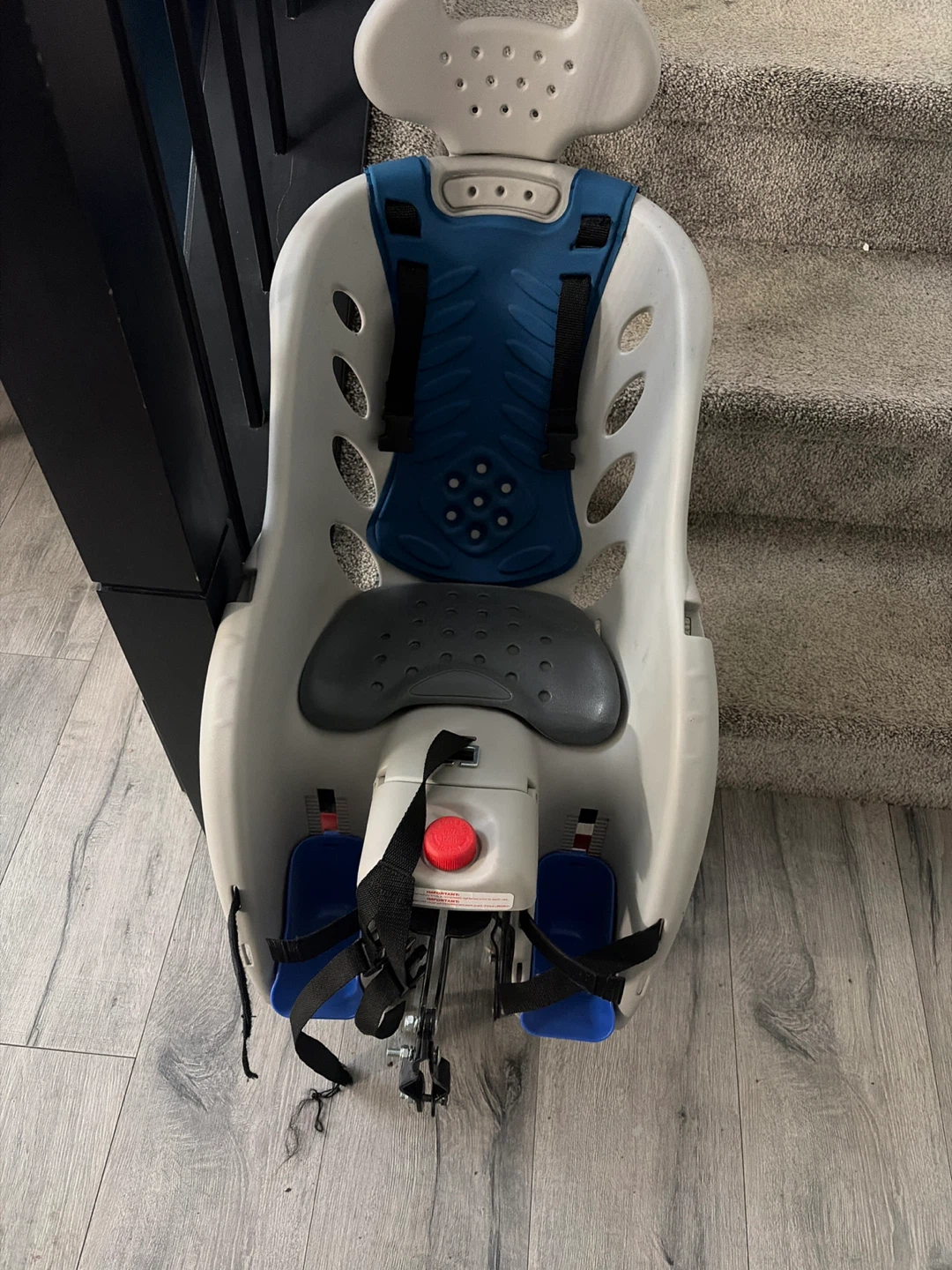 1 / 11 / 1Buy & SellChild Bike SeatChild Bike Seat$38Grey and blue child bike seat. Has adjustable foot straps and a 5-point harness. Mounts to the rear of a bicycle.ConditionLike newWHERE TO MEETCheck LocationView MapSELLERverifiedTopeThe Uplands832 reviews0 chats·0 favorites·11 viewsSEND CHAT TO SELLERHi Tope! I’m interested in your listing.Hi Tope! I’m interested in your listing.Get the Karrot app to chatSign In to chat