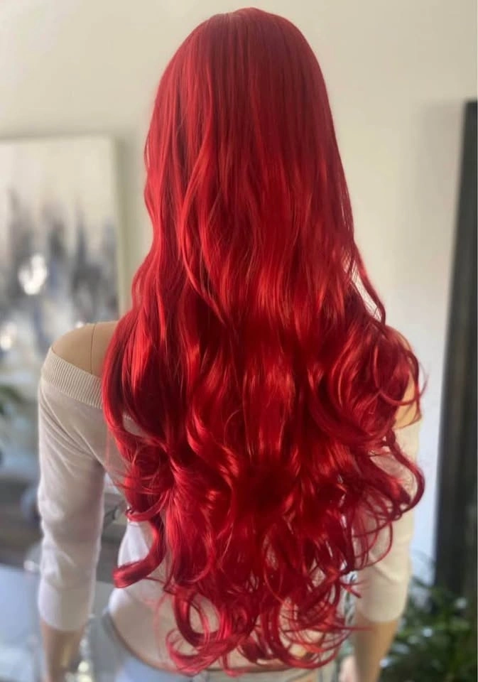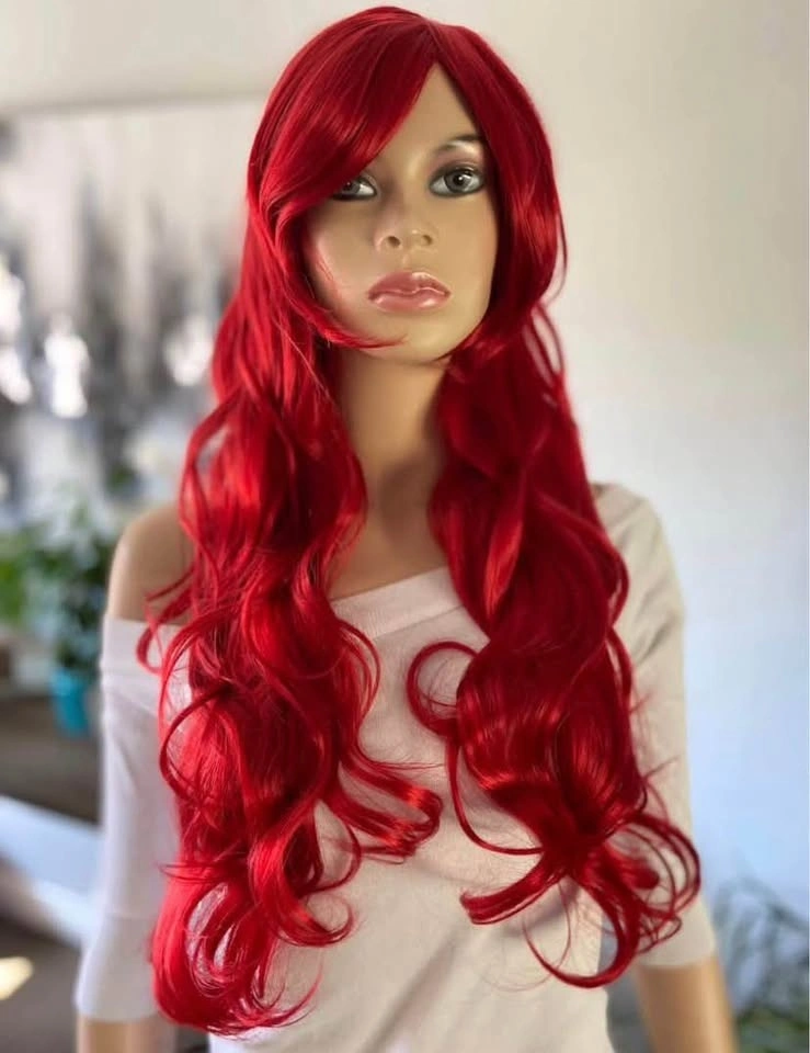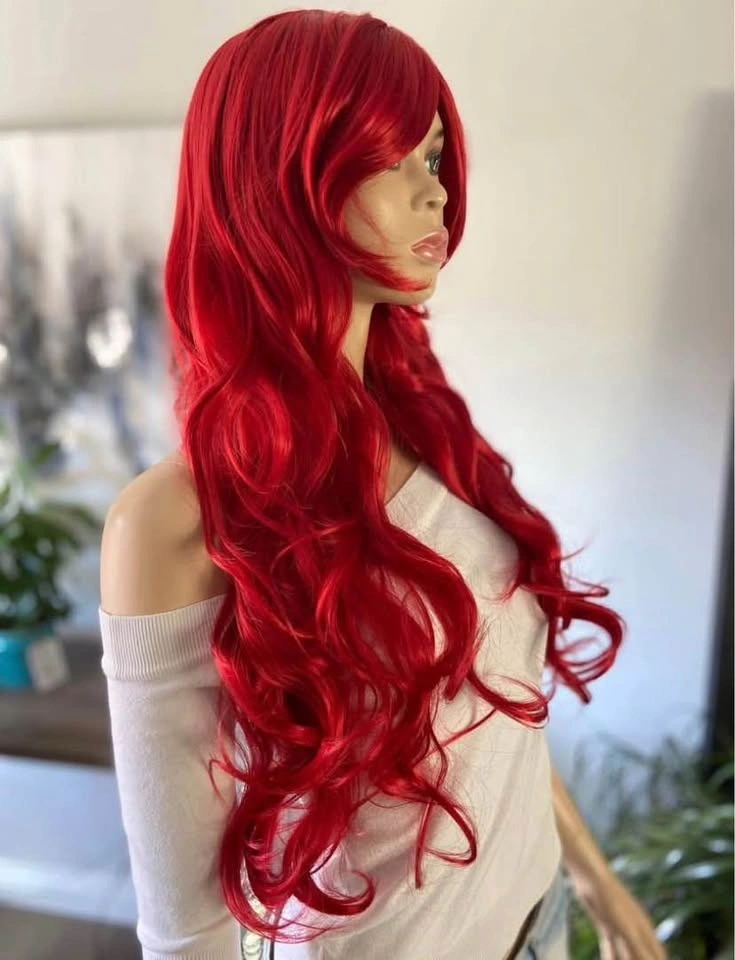 NWT: 28” Long Wavy Layered Bright Red Little Mermaid Ariel Poison Ivy Synthetic Wig w/ Bangs 2328