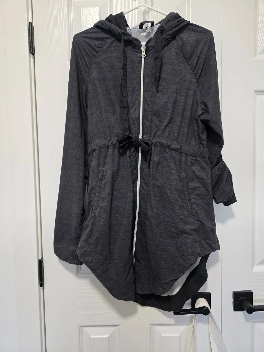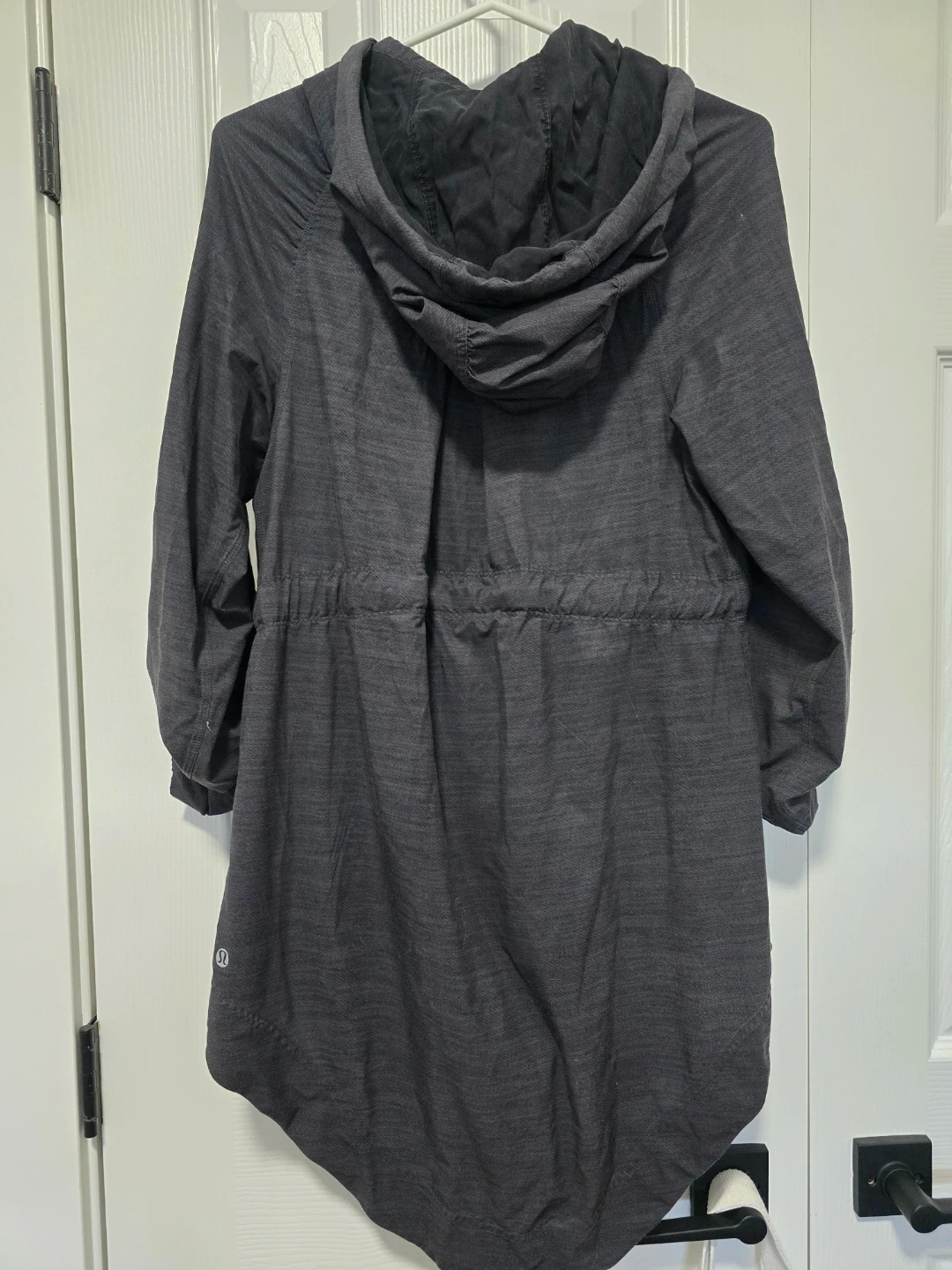 Women's size 6 lululemon light jacket with waist tie and adjustable sleeve length. No rips or stains color is a big faded.
