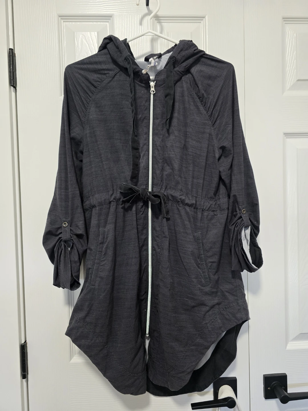 Women's size 6 lululemon light jacket with waist tie and adjustable sleeve length. No rips or stains color is a big faded.