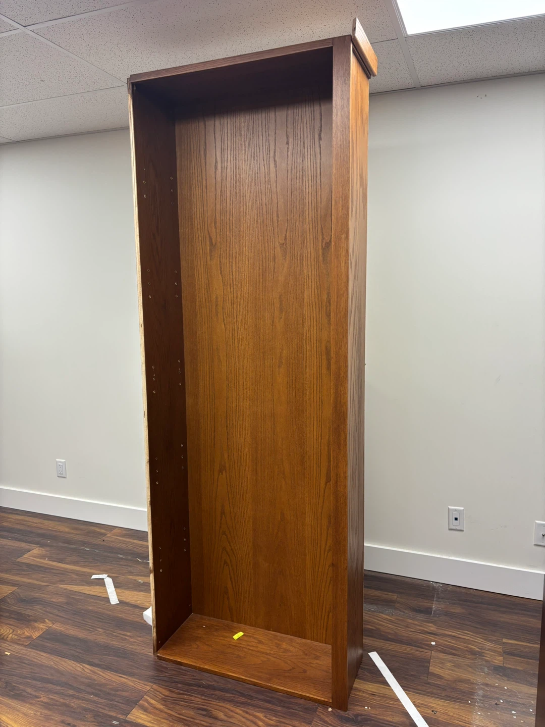 Selling a 2 wooden bookcases. The bookcases are 79 inches tall and 12 inches deep. They provides ample storage space, while the cabinet has three drawers for organizing your belongings. Both are in good condition and would be great additions to any office or home space! One is Free others are $20 each as they are in good condition