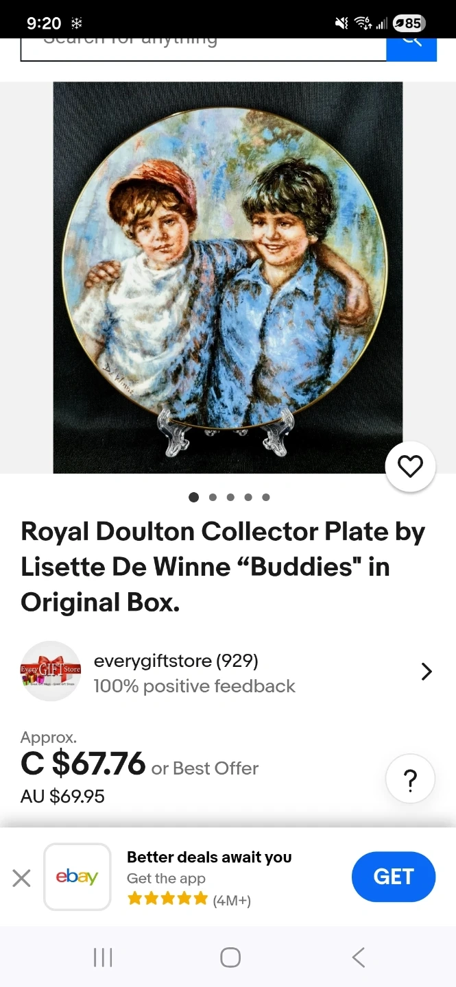 New! Royal Doulton "Buddies" Collector Plate by Lisette De Winne