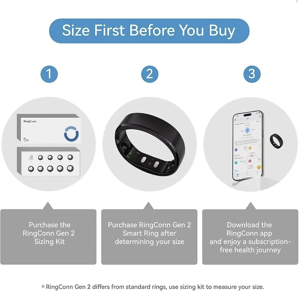 What You Get: RingConn Gen 2 Smart Ring*1, Charging Case*1, 1m/3.3ft USB-C to USB-C cable*1, user manual*1