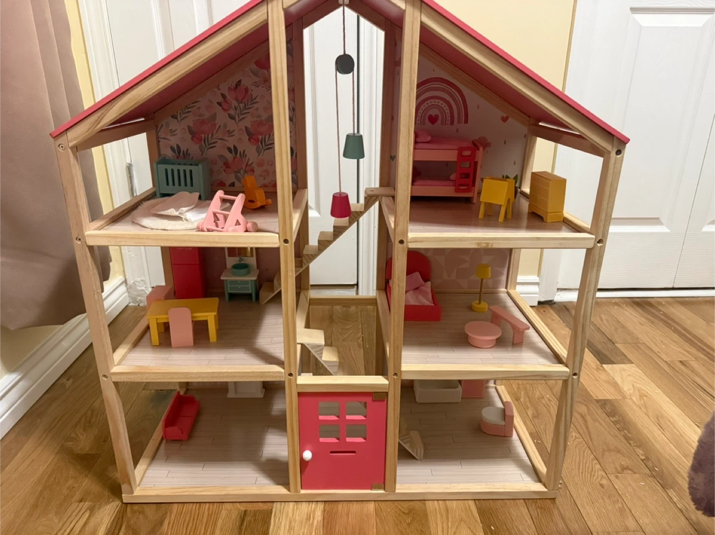 Wooden Dollhouse with Furniture