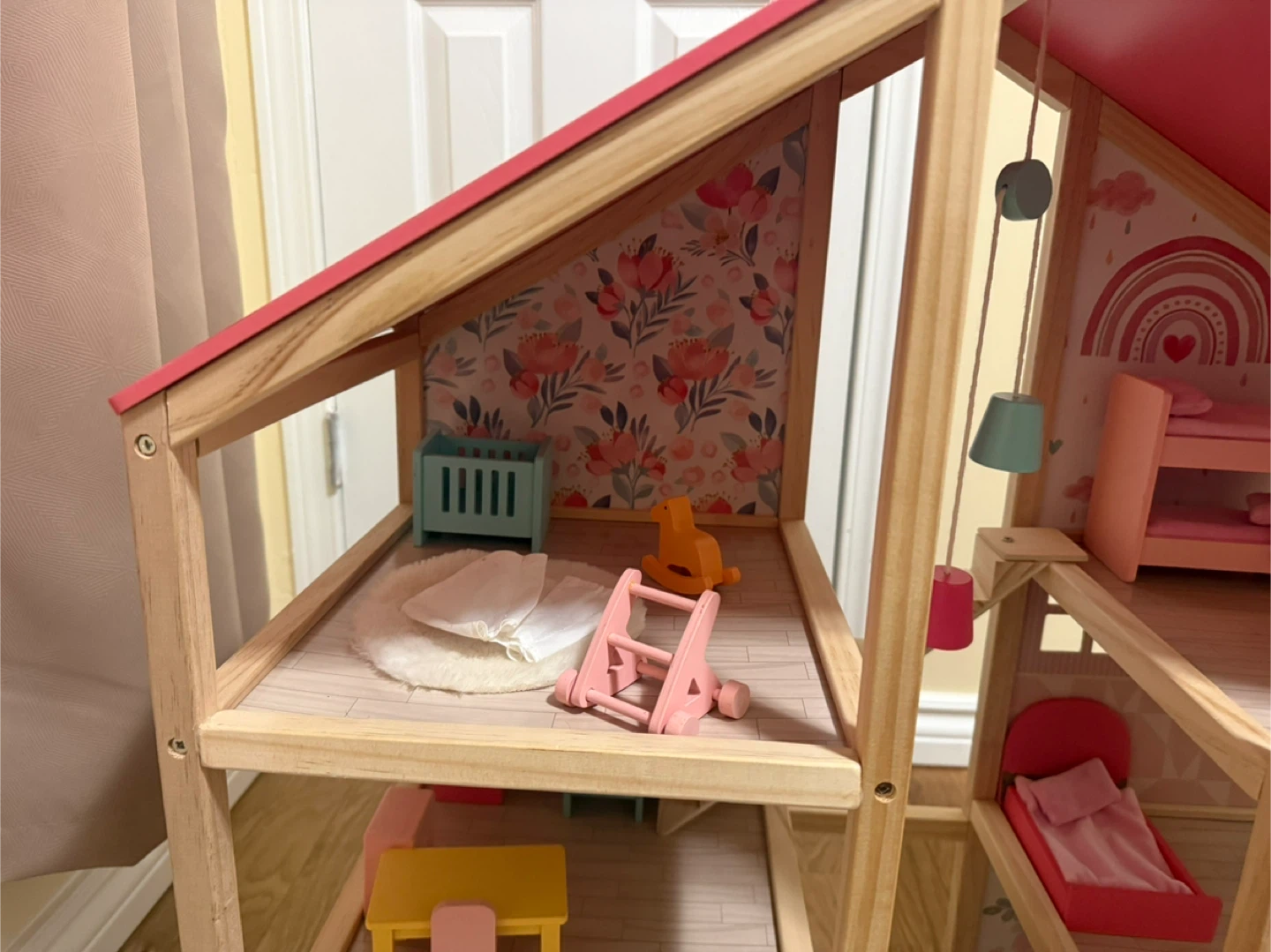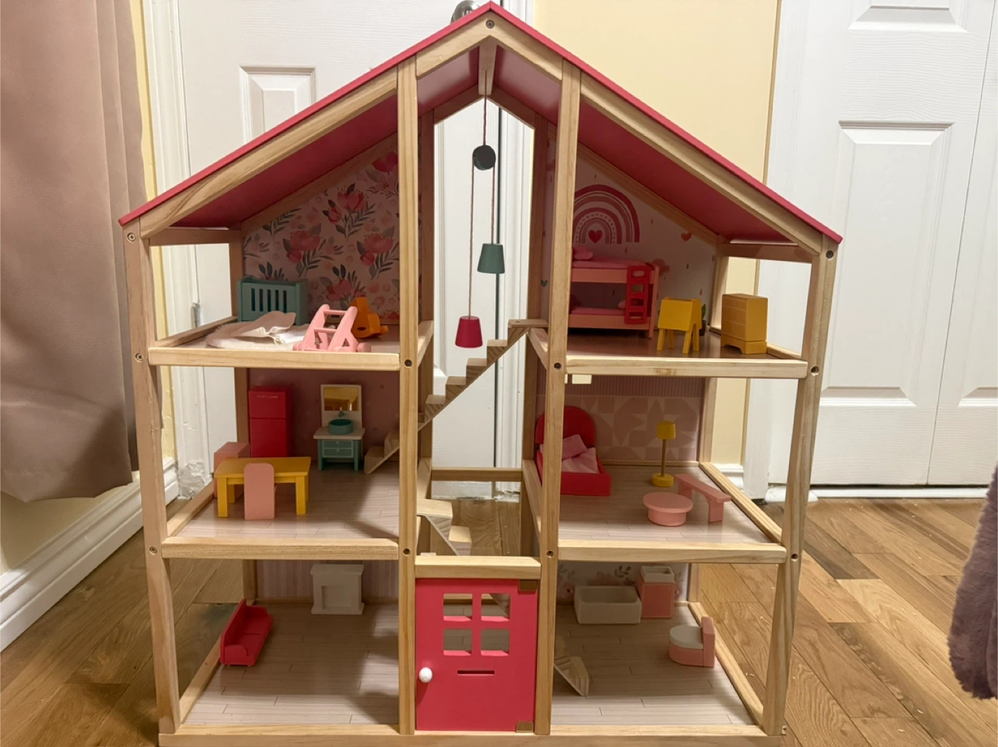Wooden Dollhouse with Furniture