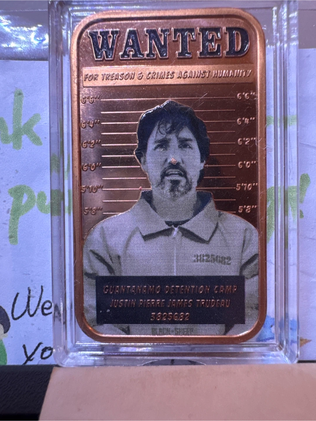 Buy & SellJustin Trudeau Wanted 1 oz Copper Enamel ColorJustin Trudeau Wanted 1 oz Copper Enamel Color$62F*CK TRUDEAU! 1 of 3 Justin Trudeau Wanted For Treason Series Collection - 1 AVDP oz Copper Wanted Bar in Capsule no COA ALL SUPER RARE!WHERE TO MEETCheck LocationView MapSELLERverifiedJohnnyDe Winton1224 reviews0 chats·3 favorites·52 viewsSEND CHAT TO SELLERHi Johnny! I’m interested in your listing.Hi Johnny! I’m interested in your listing.Get the Karrot app to chatSign In to chat