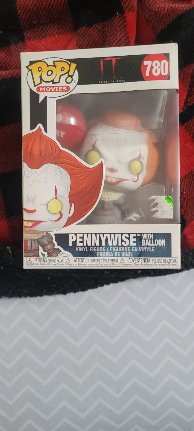 This is a Funko Pop! Movies vinyl figure of Pennywise from IT Chapter Two, complete with a balloon. It's model number 780 in the collection. The packaging is included with the figure. This collectible is a must-have for fans of the horror franchise!