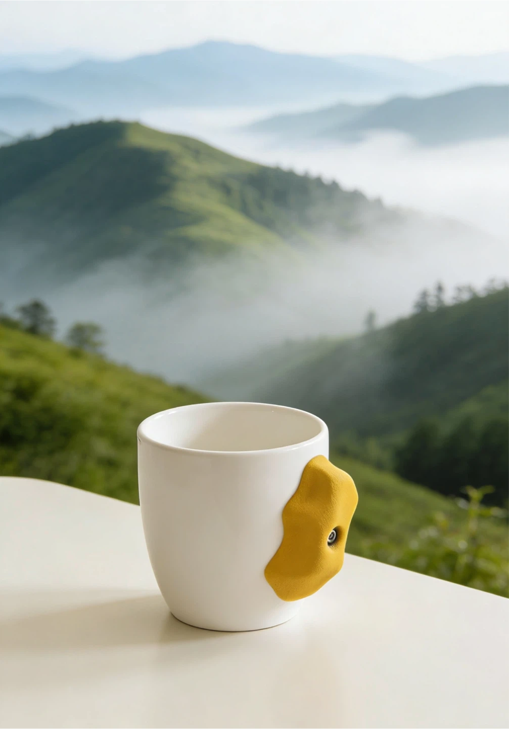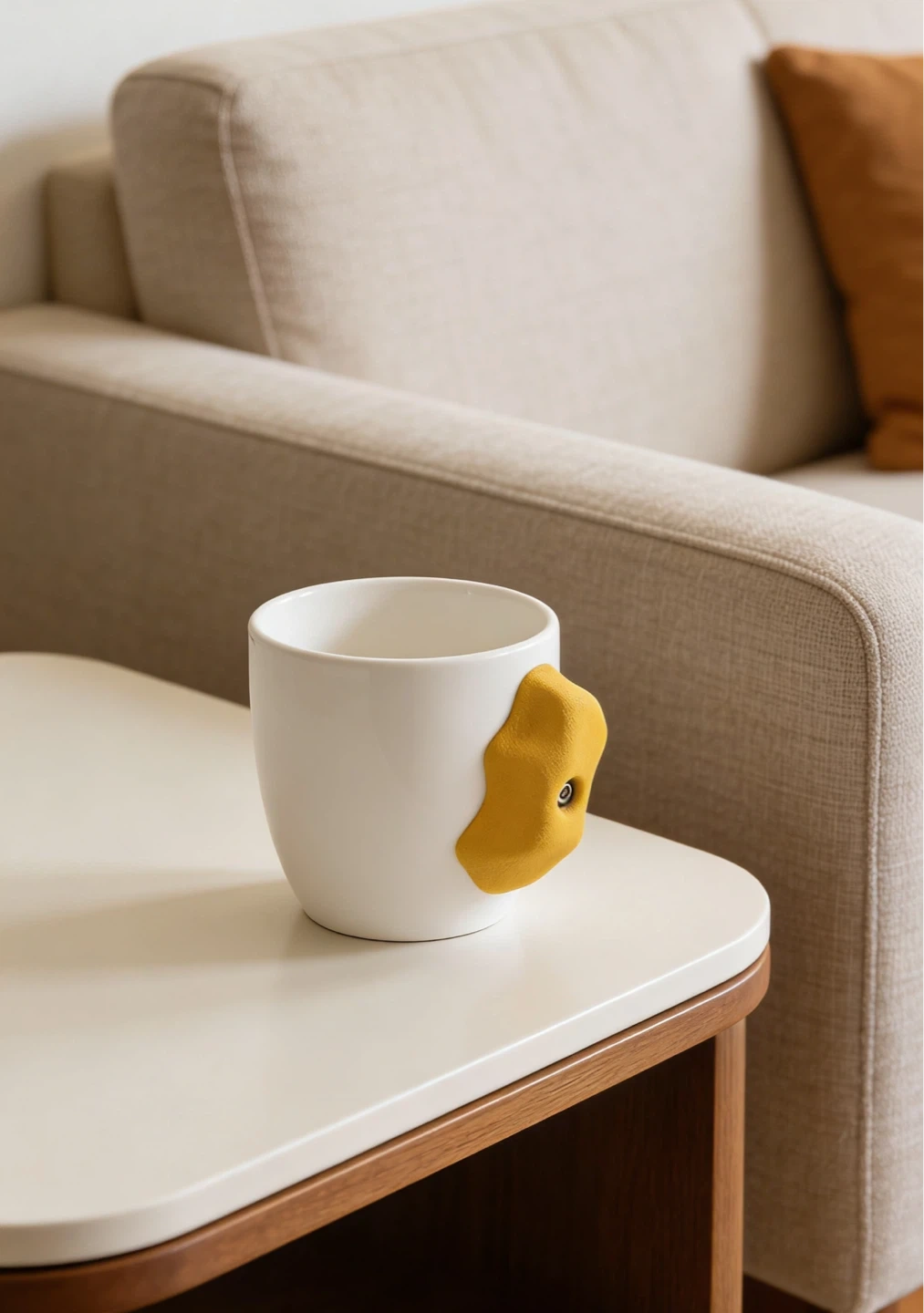 White Ceramic Mug with Yellow Climbing Hold Handle