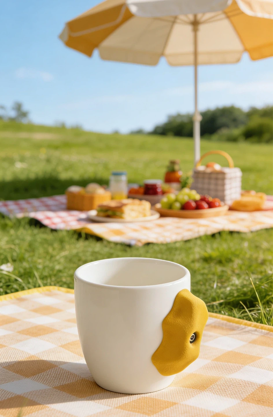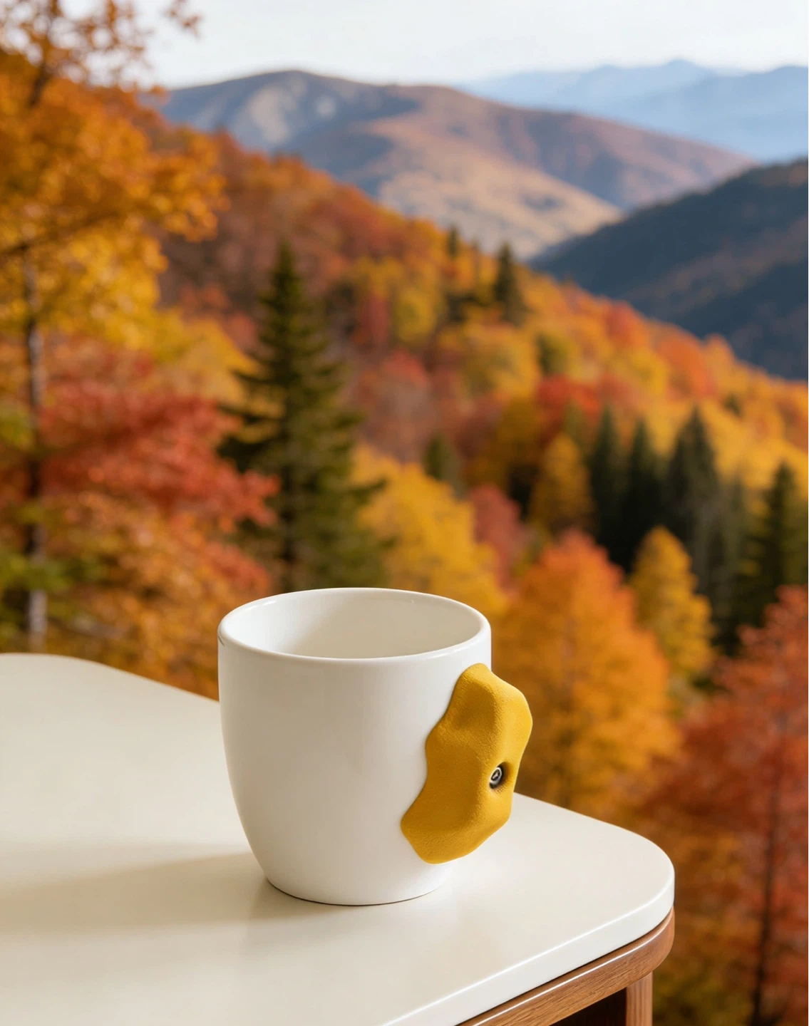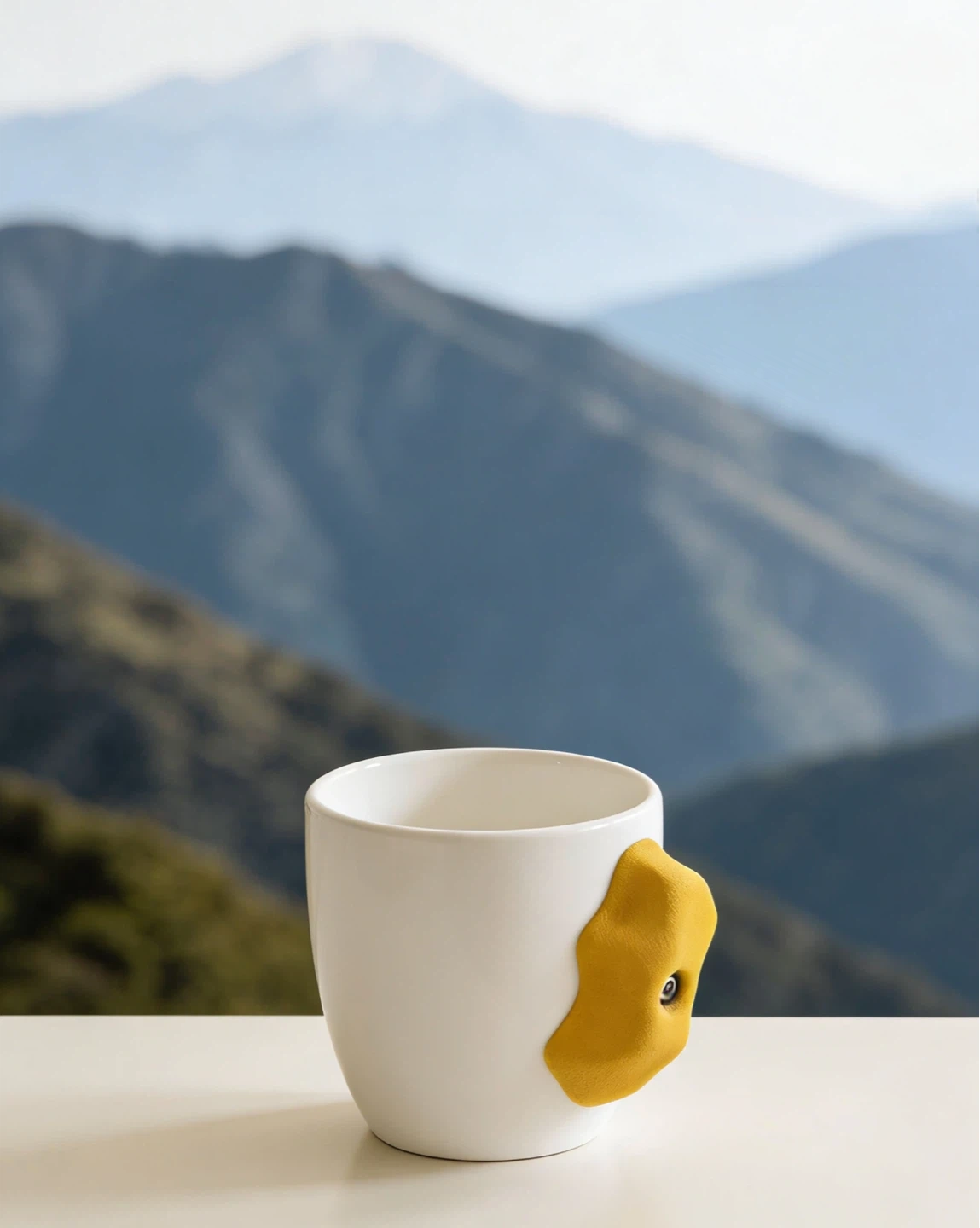 White Ceramic Mug with Yellow Climbing Hold Handle