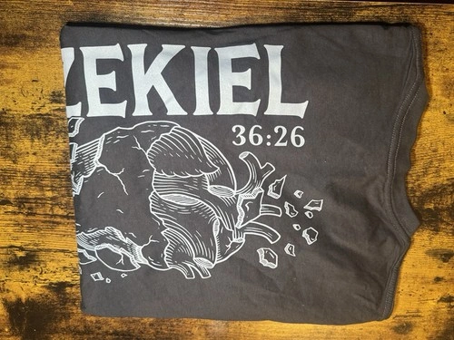 The Disciple Threads Men's Black Ezekiel 36:26 Graphic Cotton Crew Neck T-Shirt is a regular fit, short sleeve shirt made from comfortable cotton jersey fabric. Featuring a crew neck and graphic print of biblical text, this T-shirt is designed for men who want to express their religious beliefs through their clothing. The black color and gray accents make it versatile for all seasons, while the brand Disciple Threads adds a touch of authenticity to this wardrobe staple. Heart of Flesh Shirt.