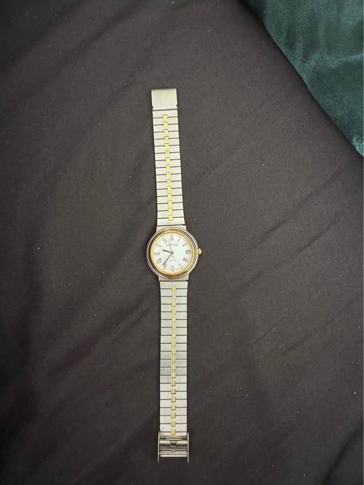 โ Curtis Quartz (left) โ Two-tone silver & gold band, Roman numeral dial, elegant look.