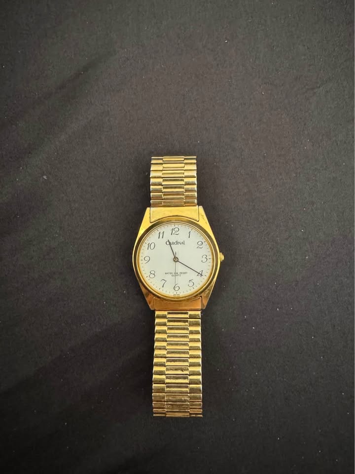 โ Cardinal Quartz (middle) โ Gold-tone stretch band, easy-to-read dial with bold numerals.