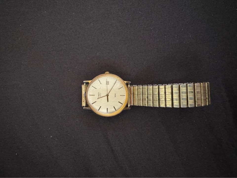 โ Timex Quartz (right) โ Classic all-gold look with a minimalist face.