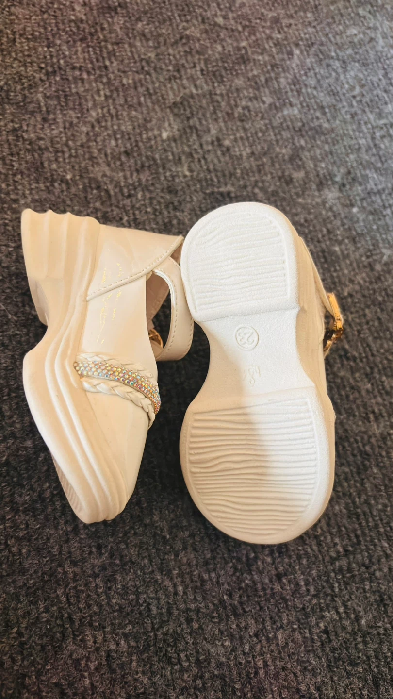 These adorable K&F dress shoes are perfect for your little one! They're a beautiful cream/off-white colour and feature a cute braided design with sparkly accents. The size is 23 (European sizing, approximately a US size 7). They are in great condition and ready for a new home!