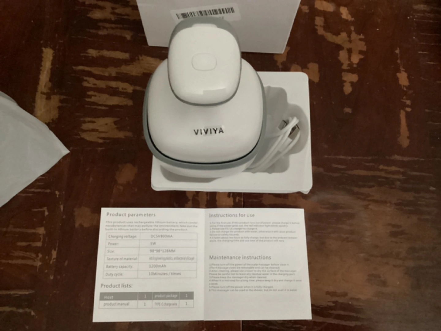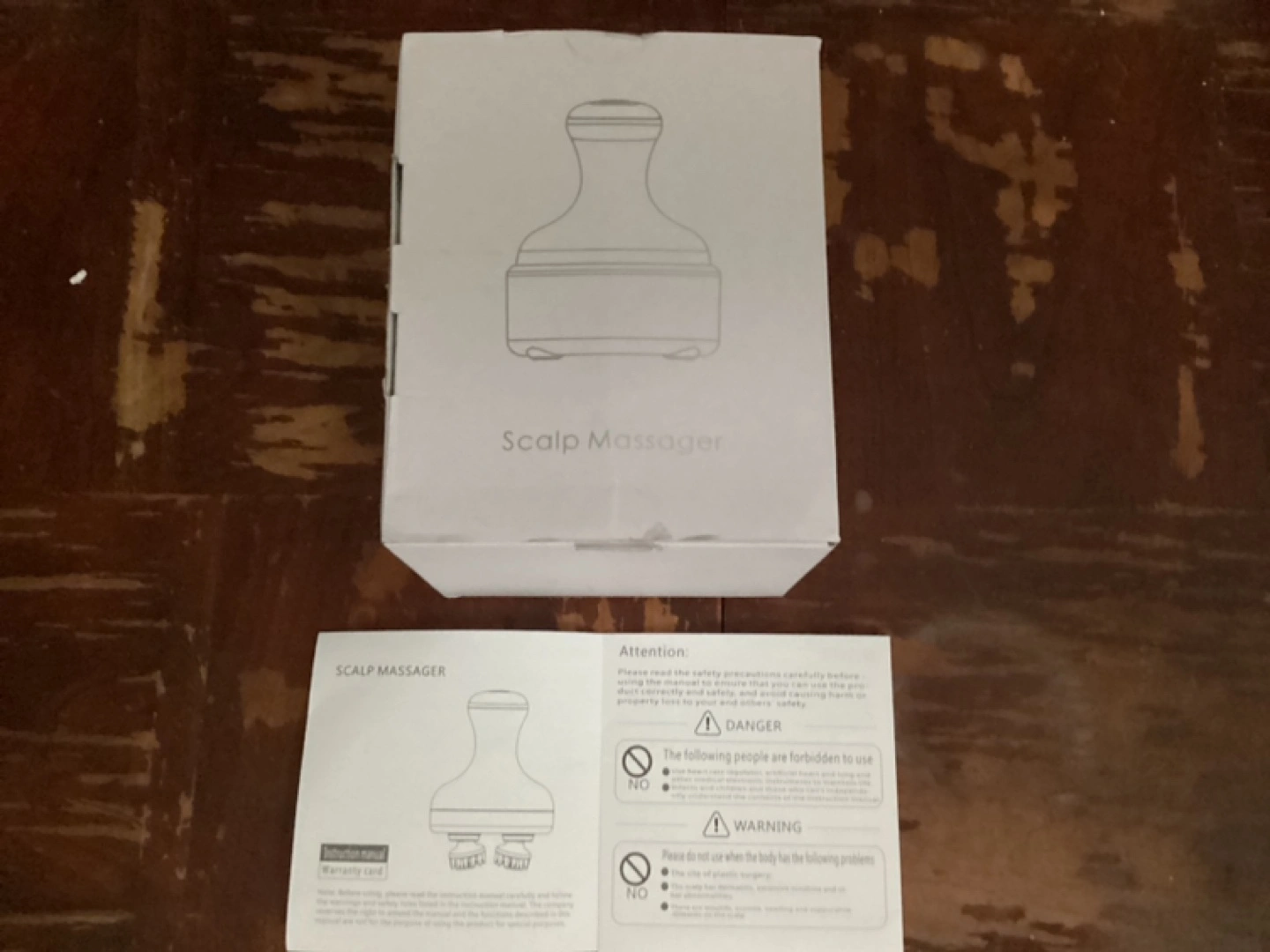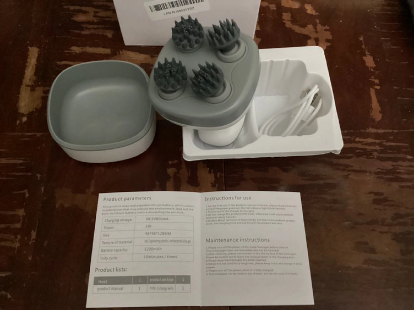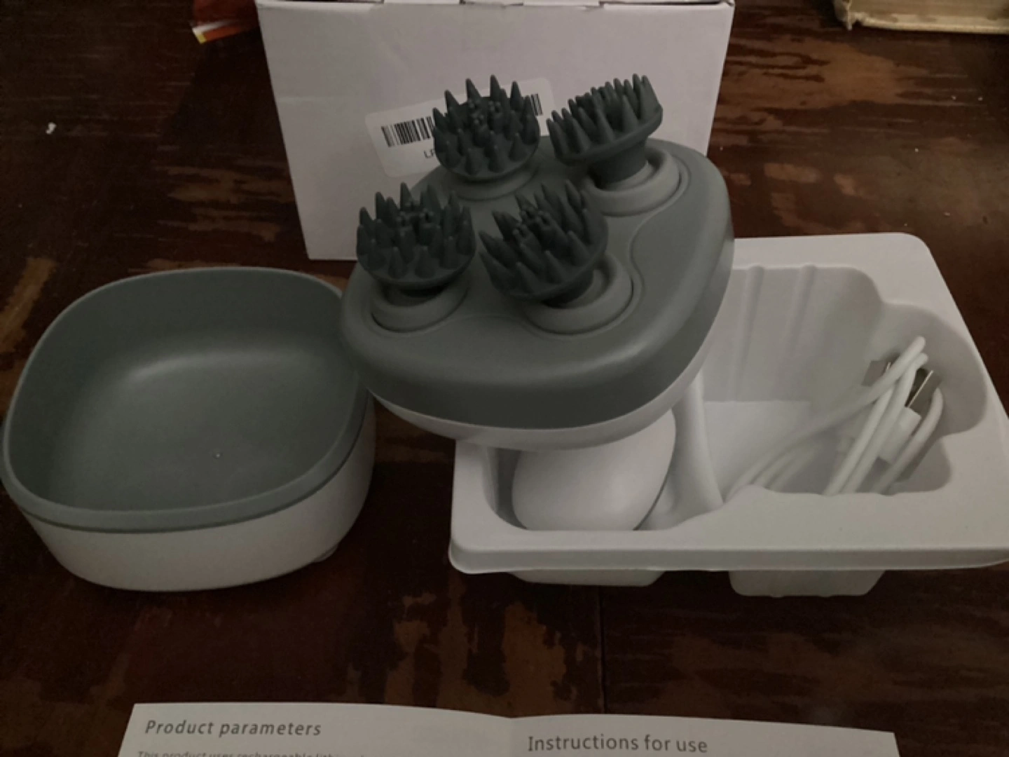 Electric Scalp Massager with rechargeable battery. Includes USB cable and charging instructions. New, never used.