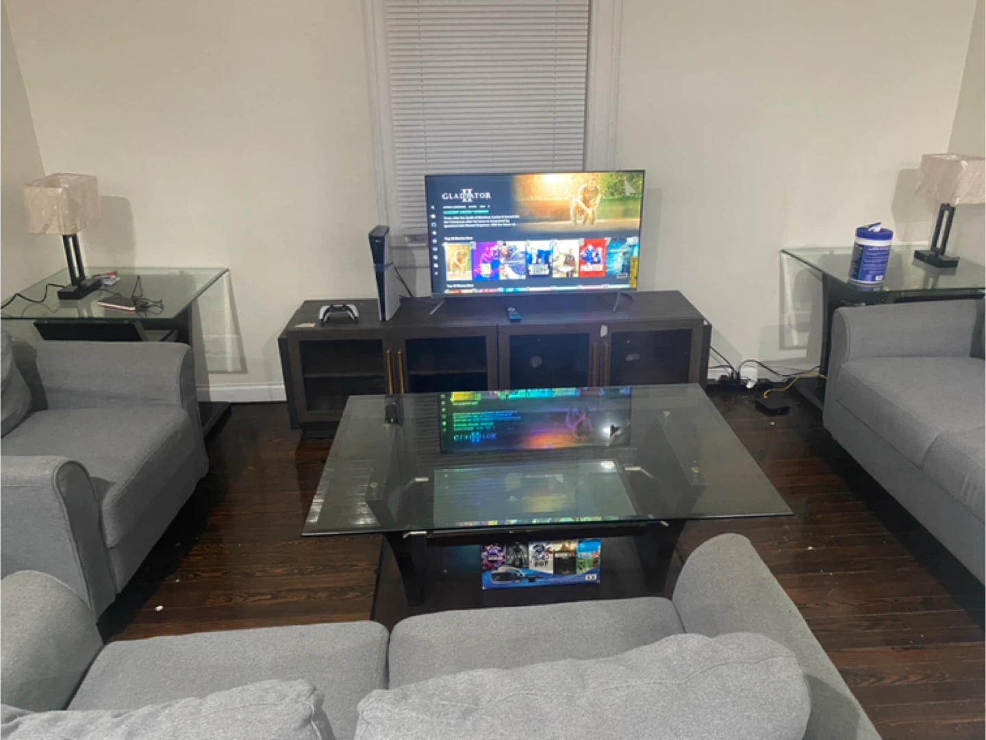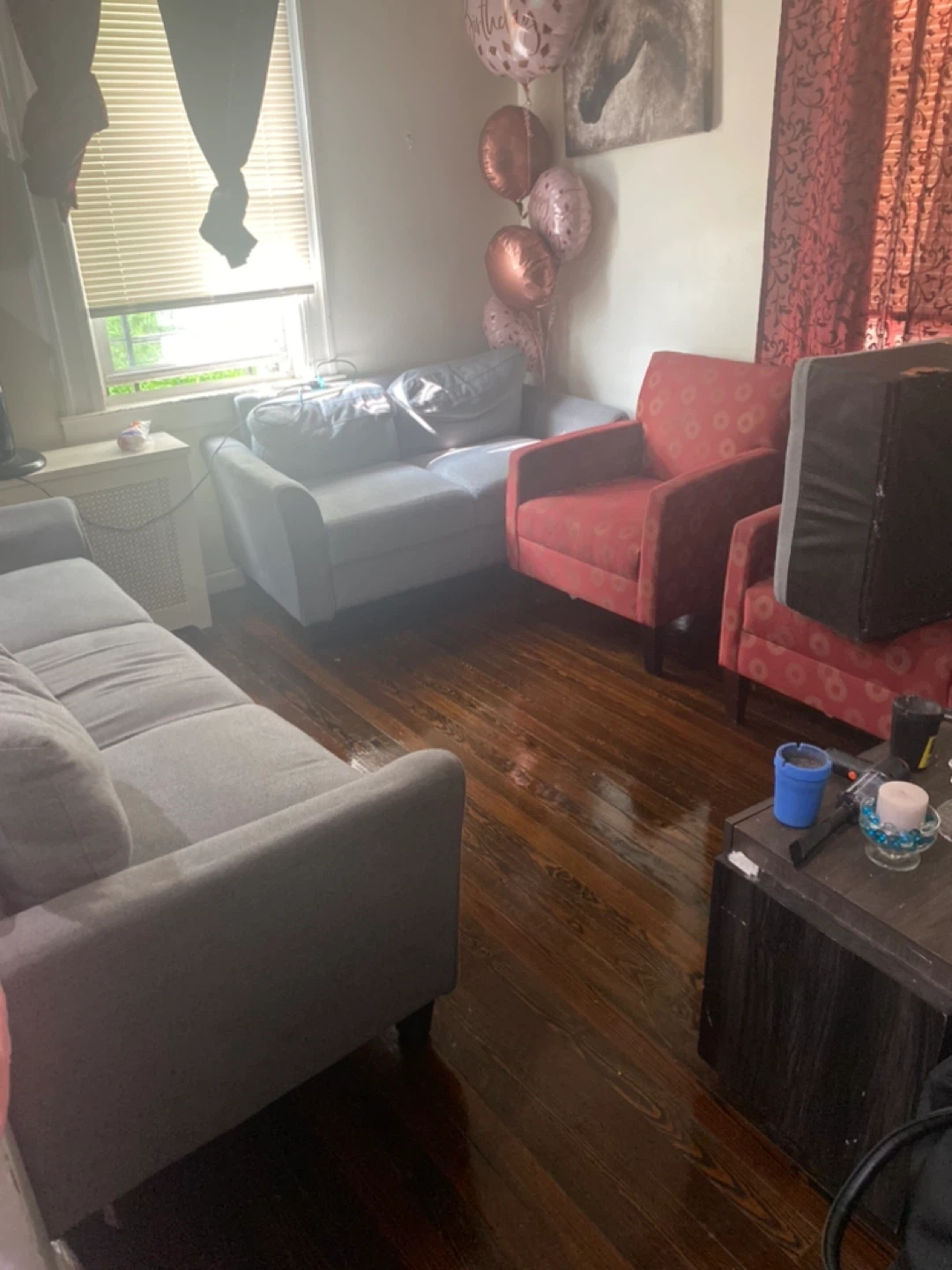 Color is grey and it can fit in any car it come apart in piece so it can fit in any room