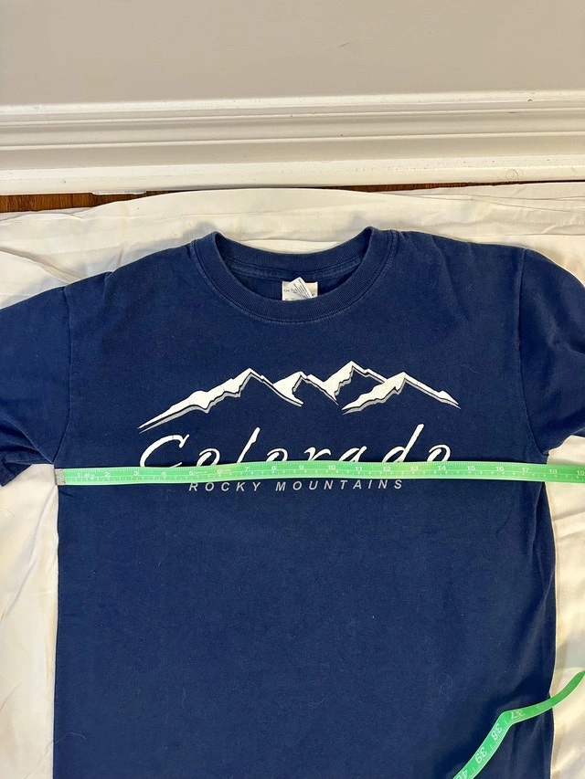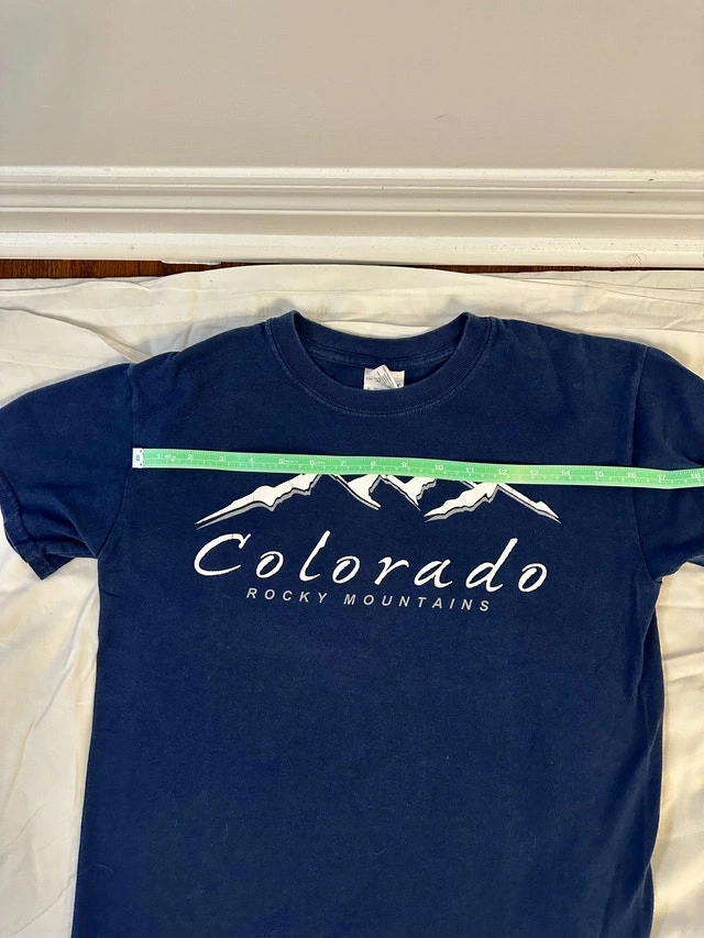 This Gildan Colorado Rocky Mountains T-shirt features a classic design perfect for casual wear or as a souvenir. It's pre-owned, but still in good condition and ready for a new adventure! Measurements are shown in the pictures. This shirt is looking for a new home. Maybe it could come home with you? If the ad is up, yes, it's still available!