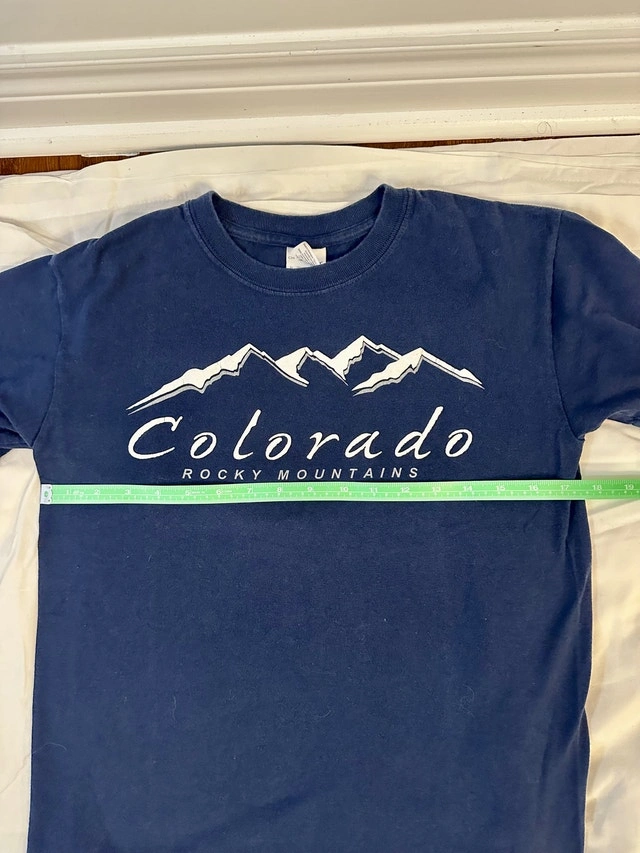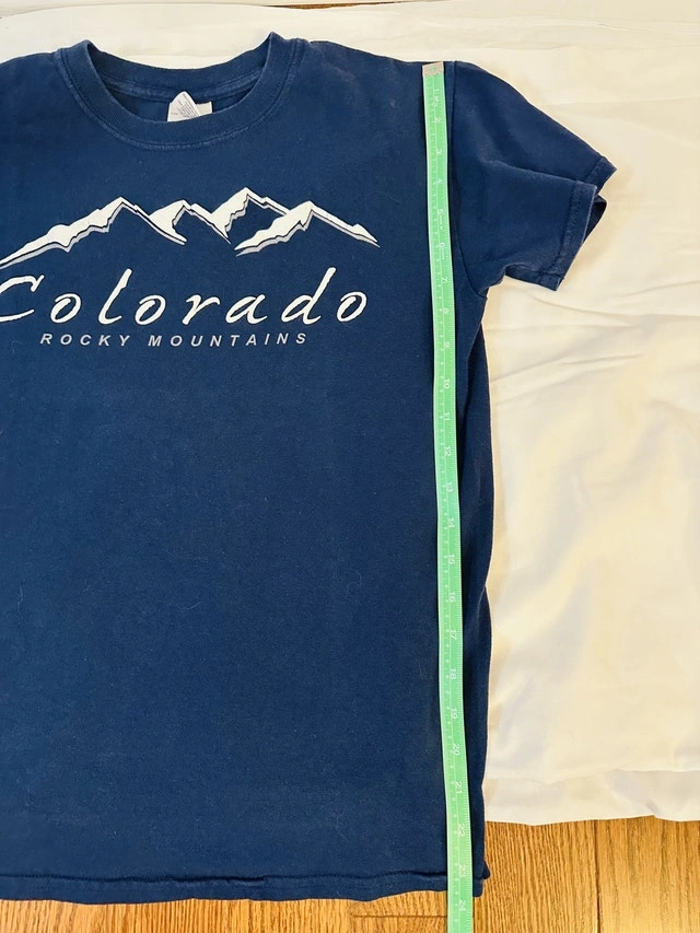 This Gildan Colorado Rocky Mountains T-shirt features a classic design perfect for casual wear or as a souvenir. It's pre-owned, but still in good condition and ready for a new adventure! Measurements are shown in the pictures. This shirt is looking for a new home. Maybe it could come home with you? If the ad is up, yes, it's still available!