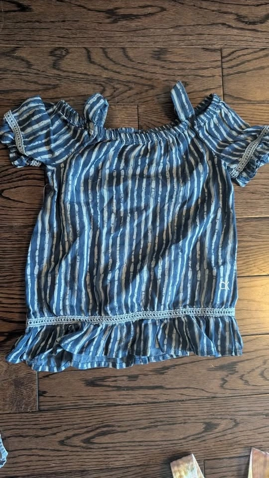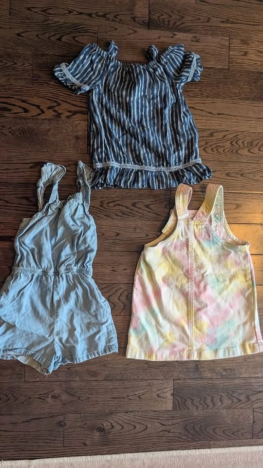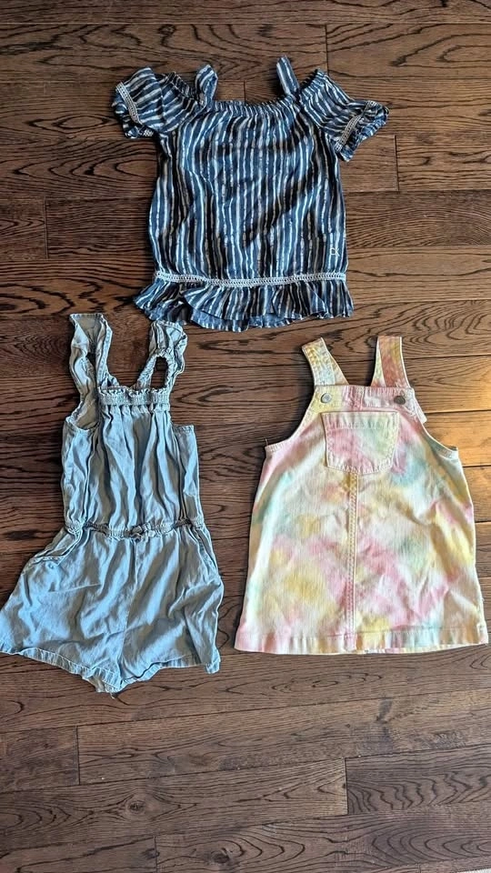 Super cute girl summer bundle! All together for $20, or $10 each. All in excellent, as-new condition. Located near Greenwood and Danforth area. Includes a tie-dye Old Navy dress (size 2T), a denim George jumper (size 3T), and a blue frilly Calvin Klein shirt (size 3T).