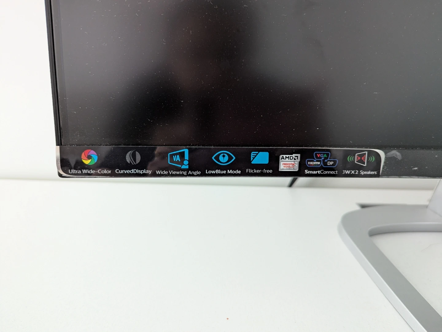 Philips 328E9 Curved display. It's a VA monitor with Ultra Wide-Color technology. Includes SmartConnect with HDMI and DP.