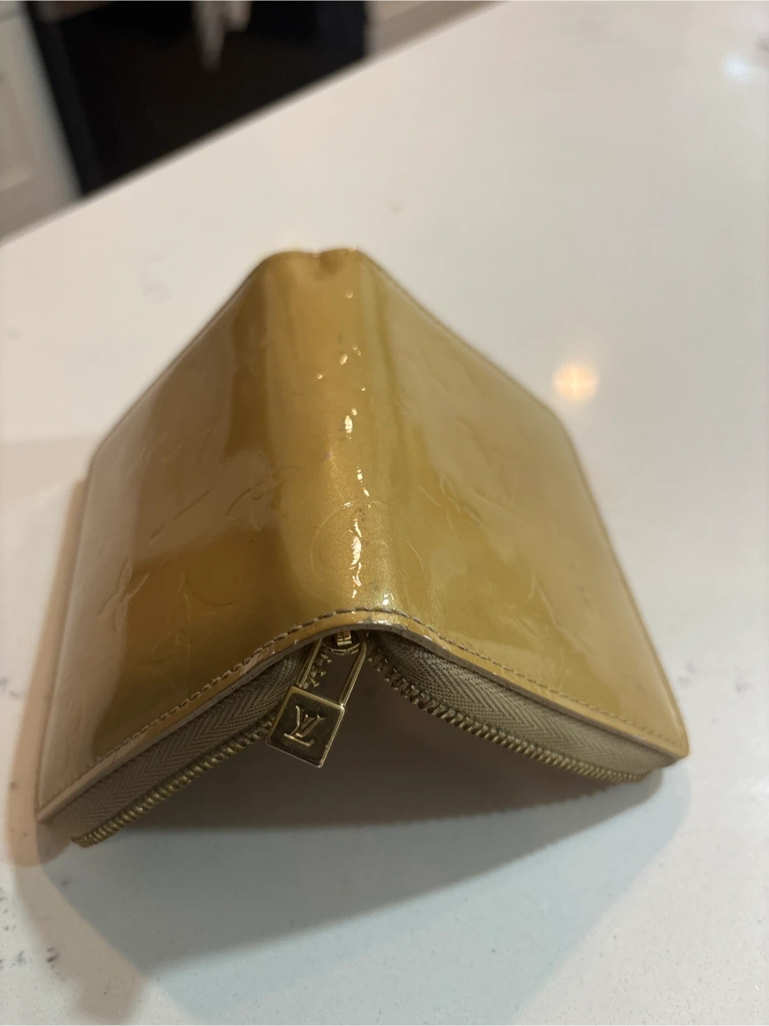 This is a Louis Vuitton Monogram Vernis Zippy Coin Purse. It's crafted from patent leather with the signature LV monogram. Inside, it features card slots and a coin compartment. It's a compact accessory for your essentials.