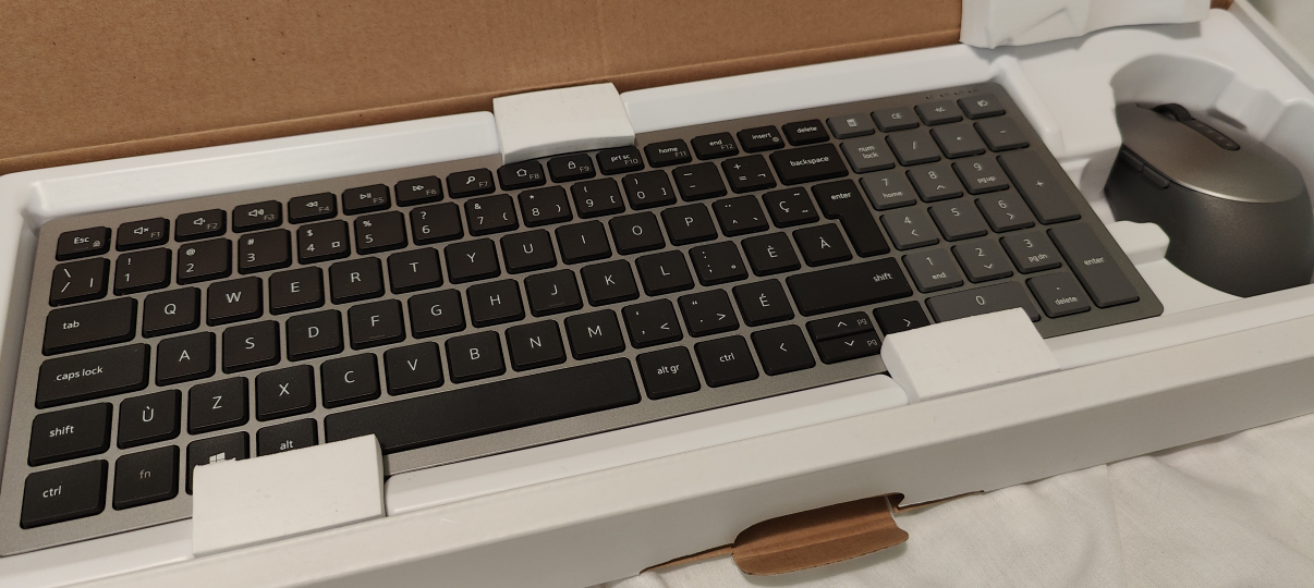 Dell wireless English/French keyboard (has French accents as option) and mouse. Never used!