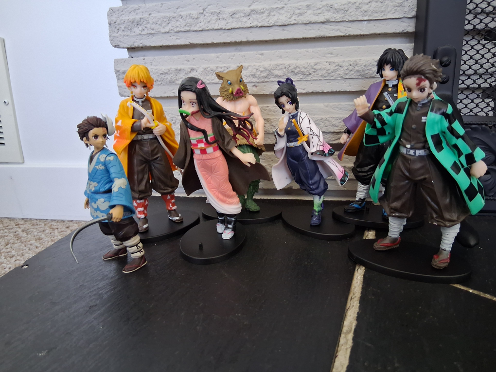 Selling a set of Demon Slayer anime figures! Includes Tanjiro, Nezuko, Zenitsu, Inosuke, Giyu, and Shinobu. Great for any fan of the series!