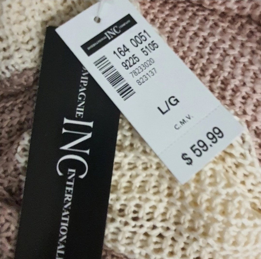 This INC International Concepts cardigan features a lovely striped pattern with muted colours. It's available in sizes M/M, L/G, and XL/TG. This cozy knit would be great for layering! It includes two front pockets.