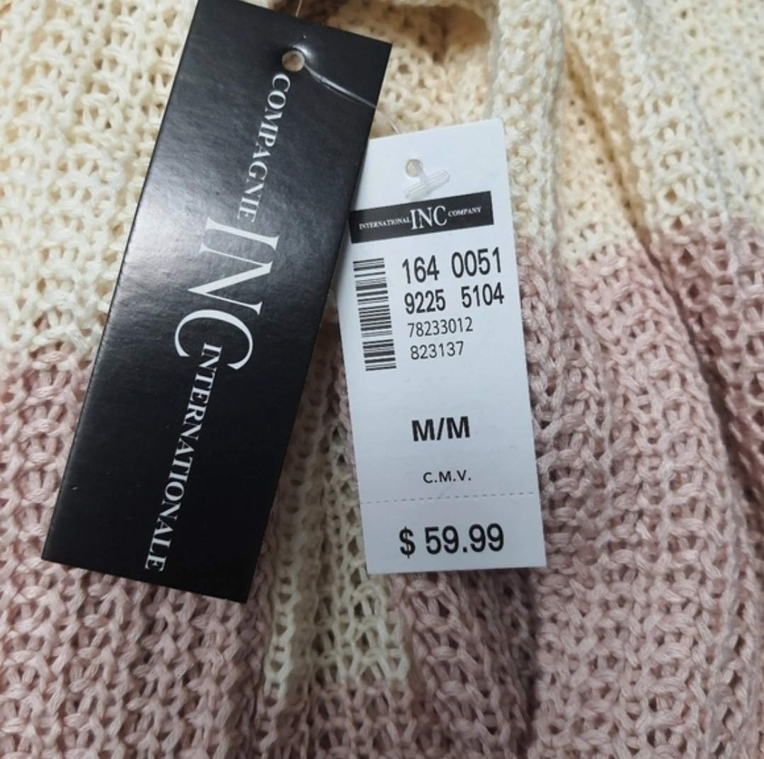 This INC International Concepts cardigan features a lovely striped pattern with muted colours. It's available in sizes M/M, L/G, and XL/TG. This cozy knit would be great for layering! It includes two front pockets.