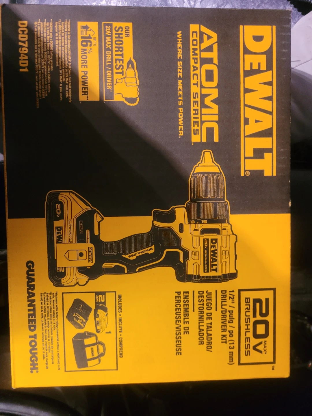 Selling a brand new DeWalt Atomic Compact Series 20V MAX Brushless 1/2" Drill/Driver Kit! It's the DCD794D1 model and comes in the original box. This drill driver is known for its compact size and power, making it perfect for various tasks. The kit includes everything you need to get started!