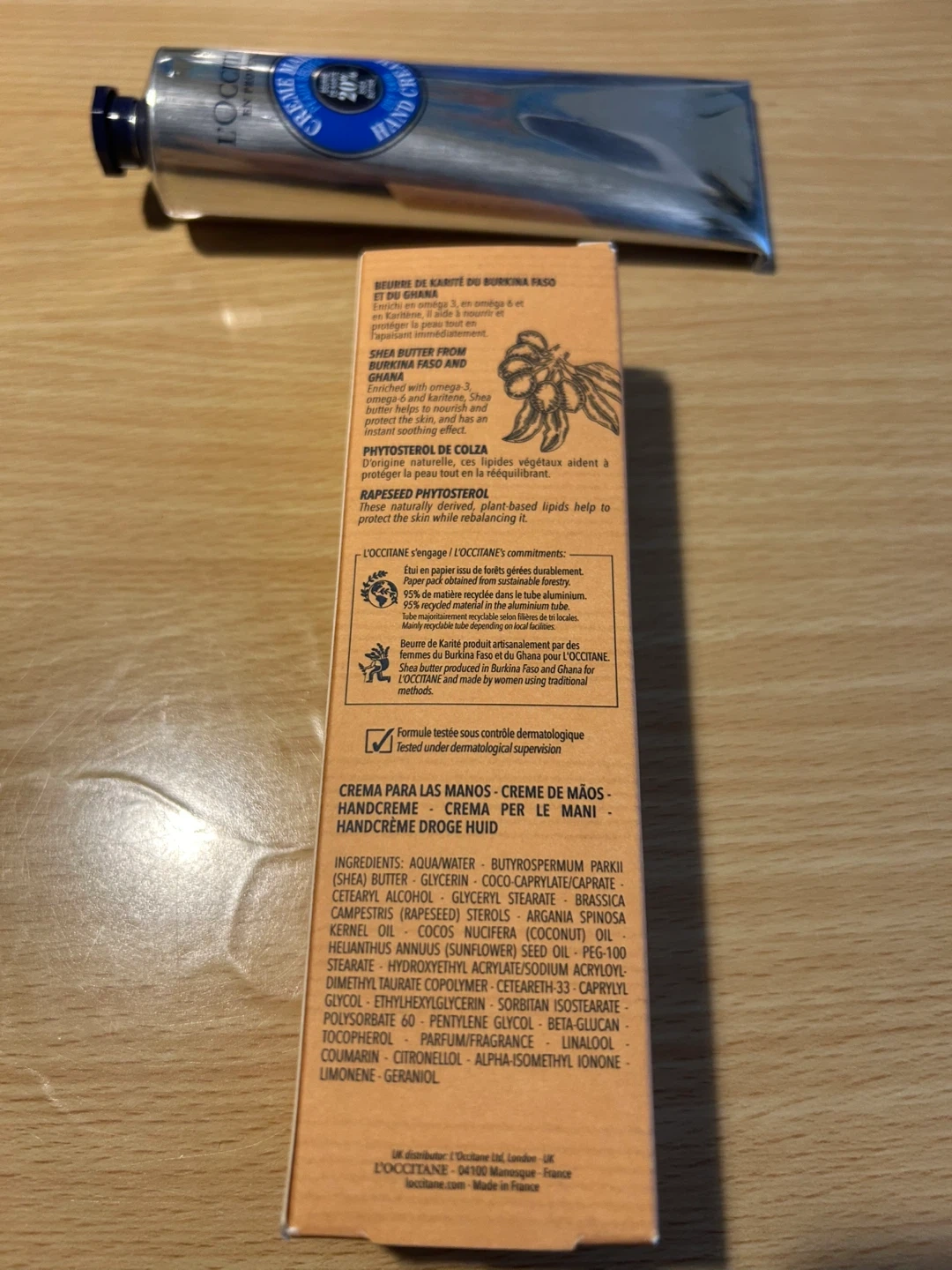 This L'Occitane hand cream is formulated with 20% shea butter. It nourishes and protects dry skin. Made in France.