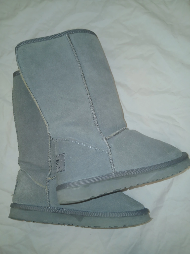 Selling a pair of UGG Australia Classic Tall boots in a lovely grey colour! They are a women's size 5. These boots are in great condition and ready to keep your feet warm and cozy this winter!