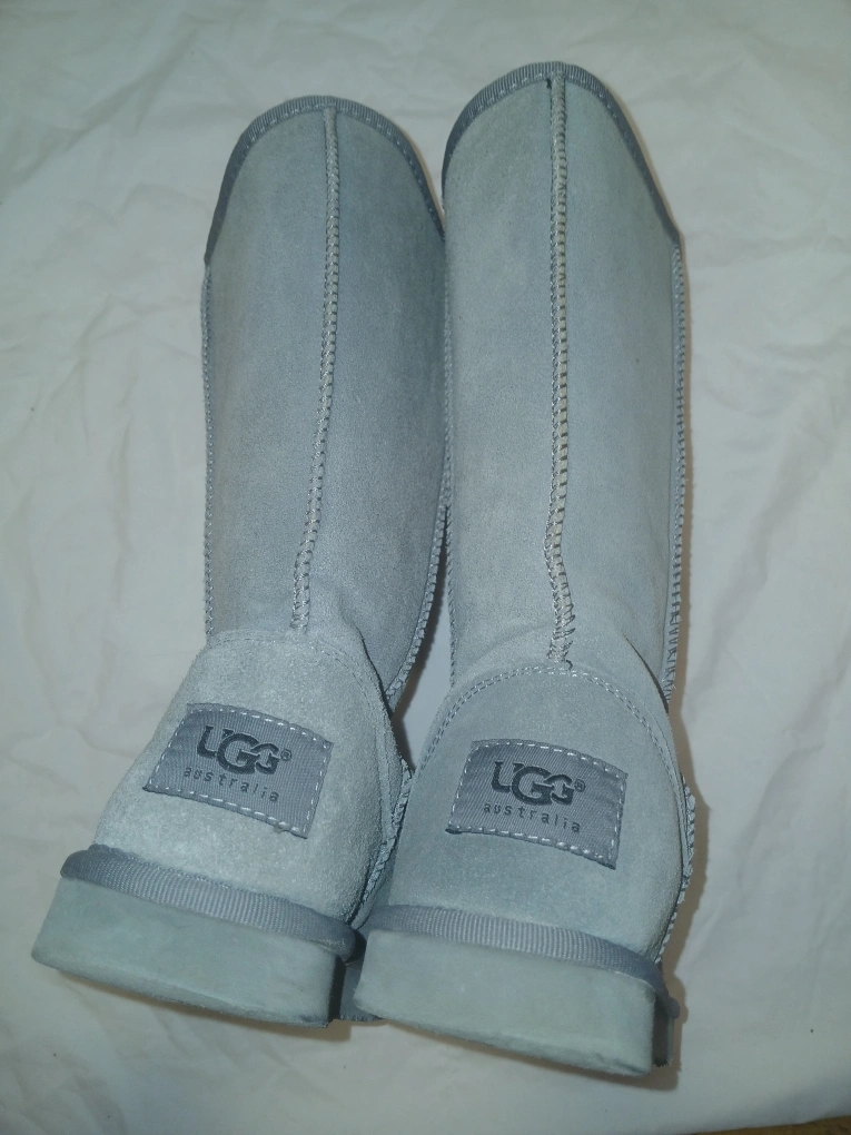 Selling a pair of UGG Australia Classic Tall boots in a lovely grey colour! They are a women's size 5. These boots are in great condition and ready to keep your feet warm and cozy this winter!