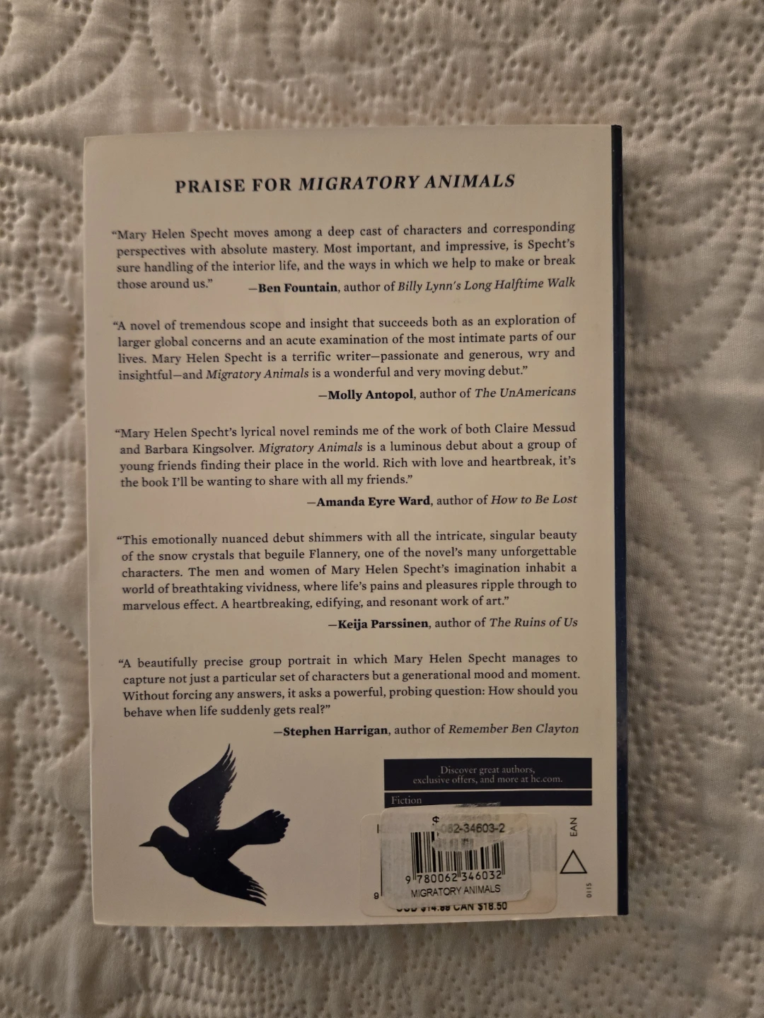 Selling the novel Migratory Animals by Mary Helen Specht. This book is a captivating read, perfect for anyone who enjoys thoughtful and beautifully written stories. A great addition to your bookshelf!