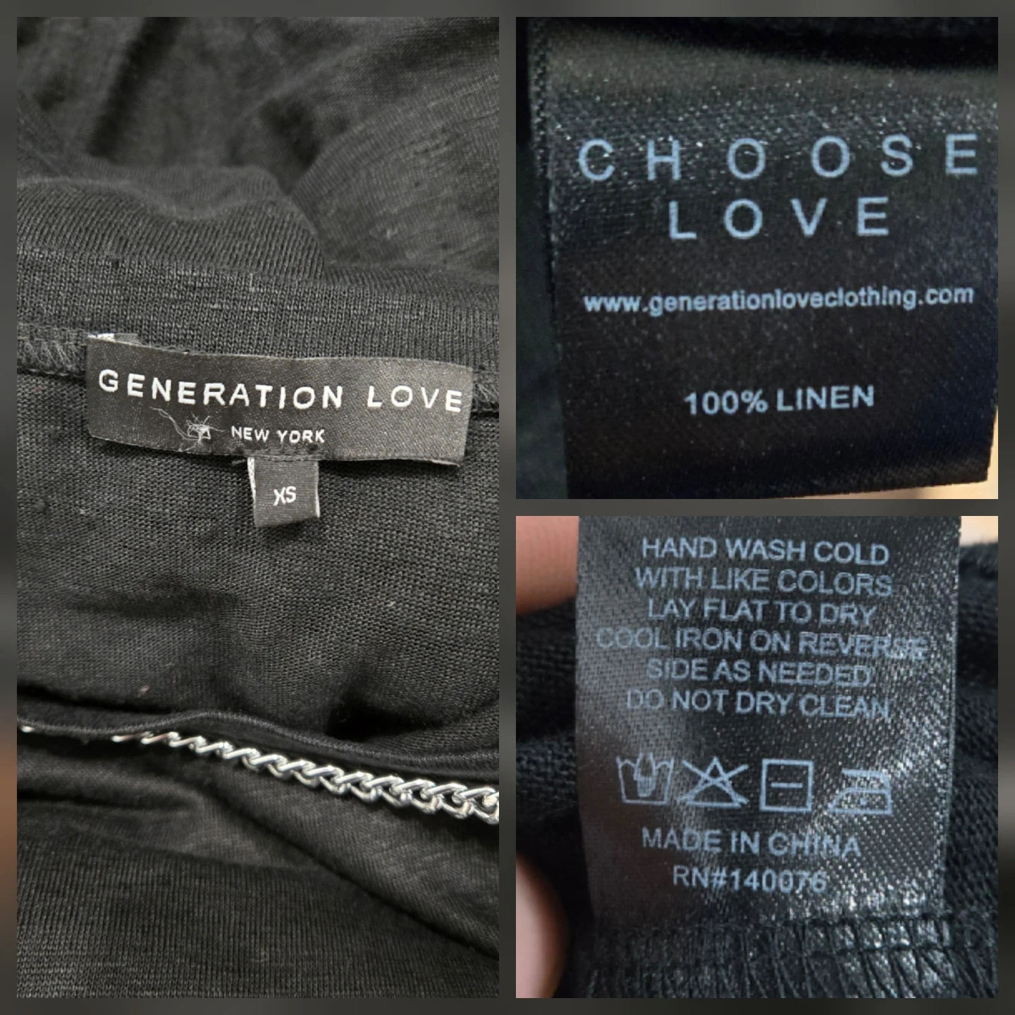 Generation Love Billy Chain-Trim Linen Top in Black Size XS/S