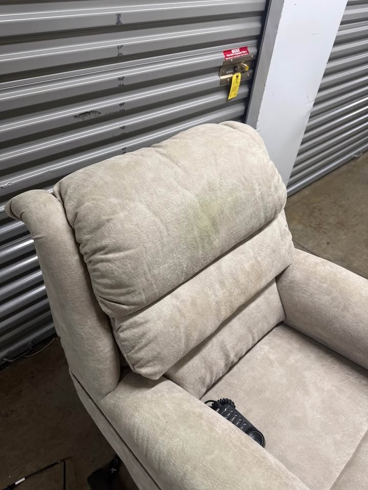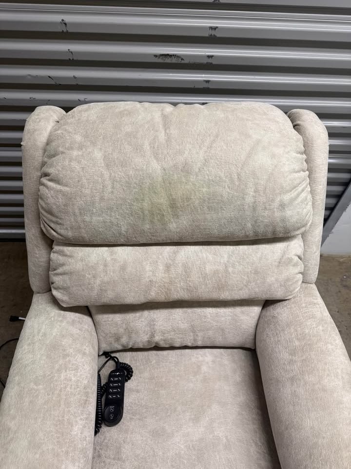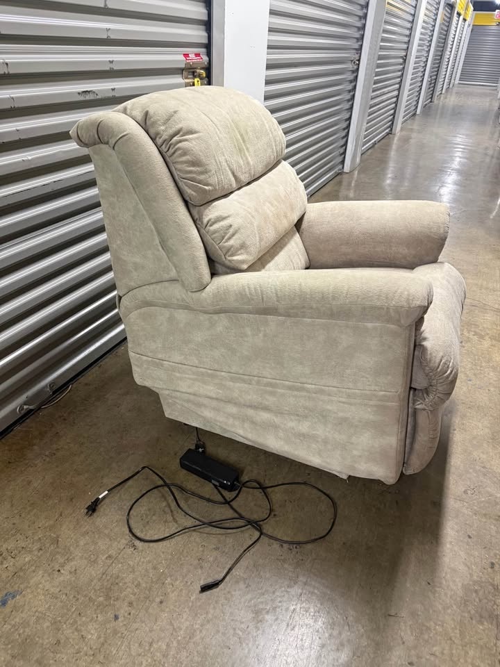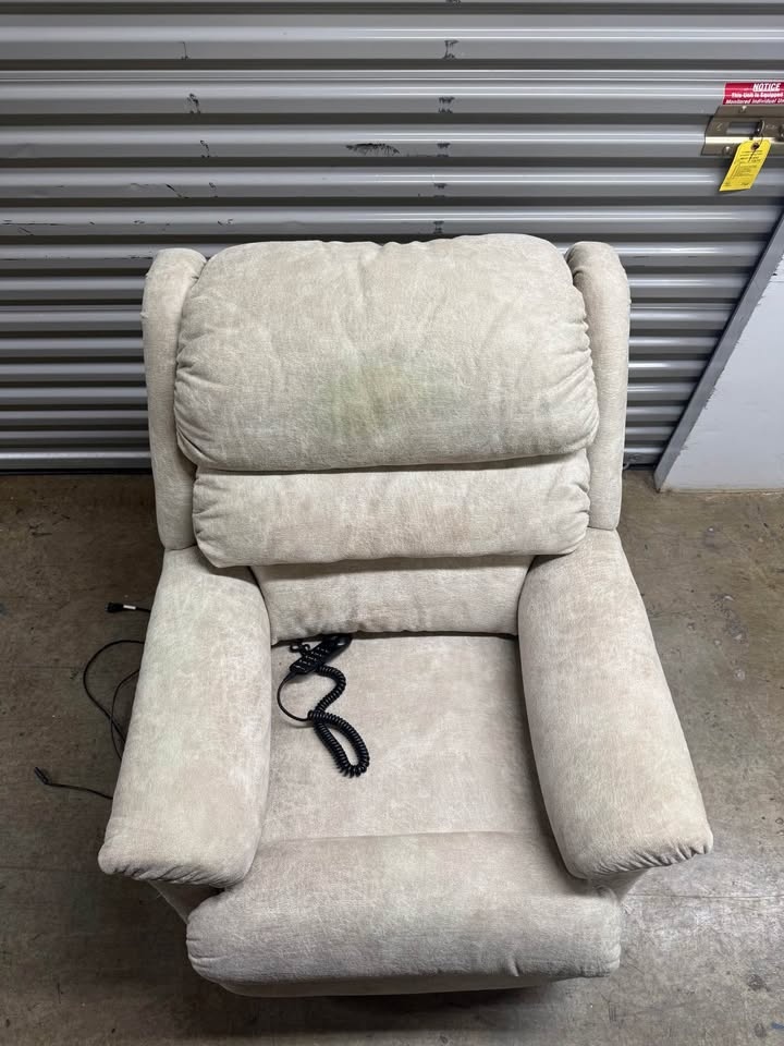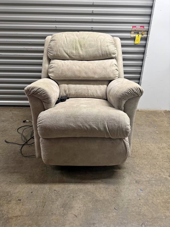 Remote controlled Lazboy recliner chair. Overall condition is 8.5/10. The headrest has a bit of discoloration, but it is in really good condition. The chair is in Park Slope.