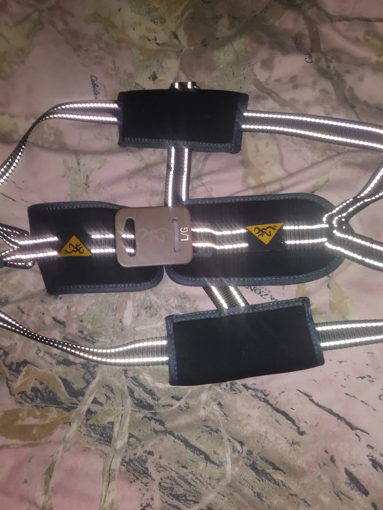 Selling a Browning dog harness in size large/grande (L/G). It features reflective strips for added visibility during walks. Great for keeping your furry friend safe and secure!
