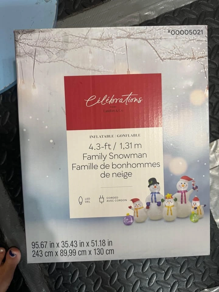 New sealed inflatable snow man family. Pick up NE Marlborough. Firm. I have more Christmas decor for sale from a closed party supply shop, including inflatables, toys, Advent calendars, and stocking holders.