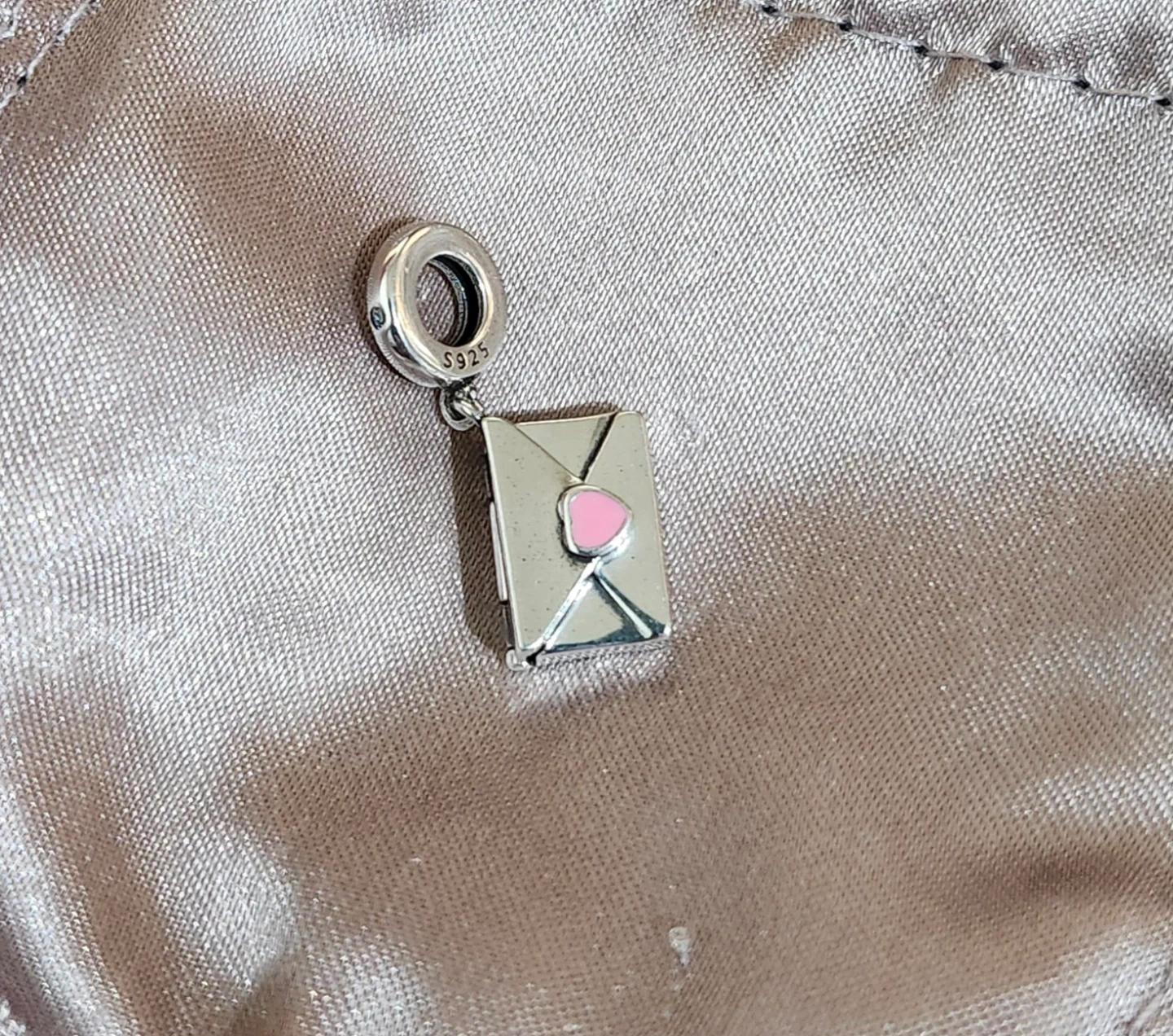 Sterling silver charm shaped like an envelope that opens. Engraved with "Mama, hero I love you forever" inside. This charm is perfect for expressing love to a mother. It's a thoughtful gift for any occasion!