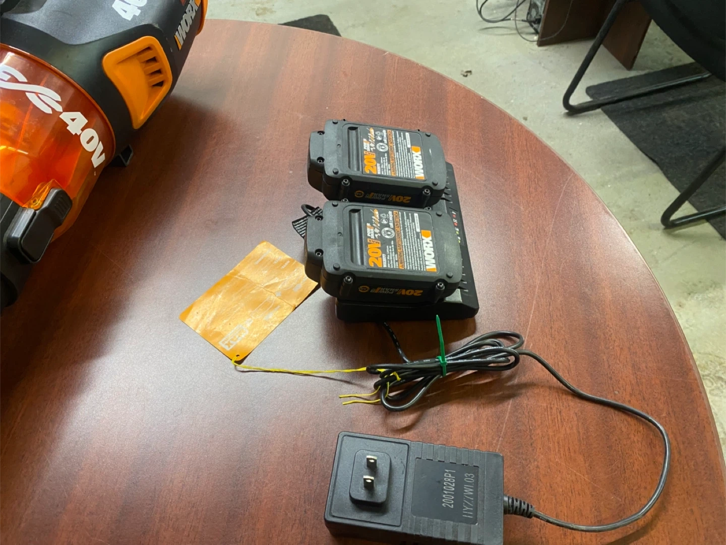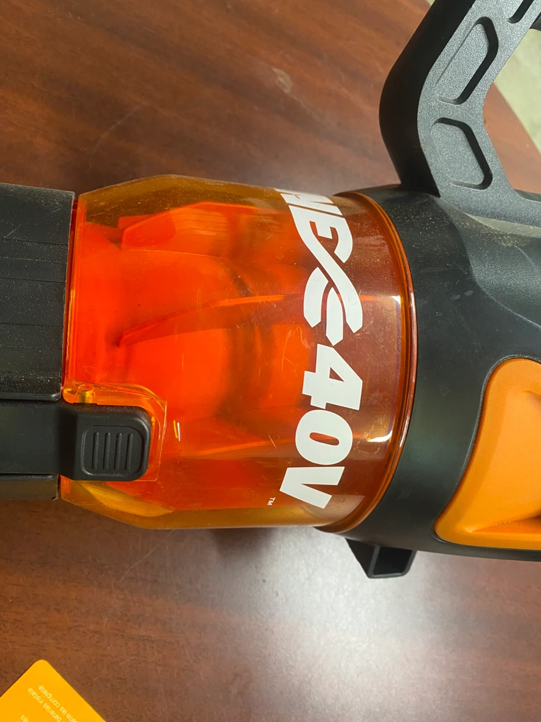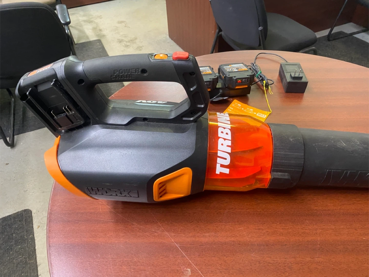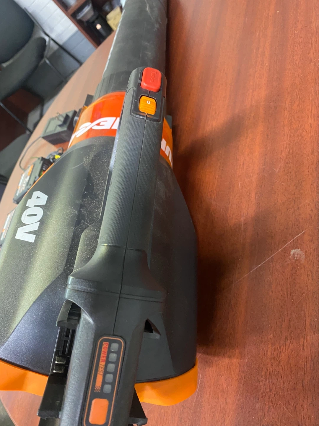 Get ready to tackle those leaves with this used WORX 40V Turbine Cordless Blower, which includes two 20V batteries and a charger! This tool is ready to get your lawn looking great. While it's seen some action, it's still in good working condition and ready to blow away the competition, or at least the leaves on your lawn.