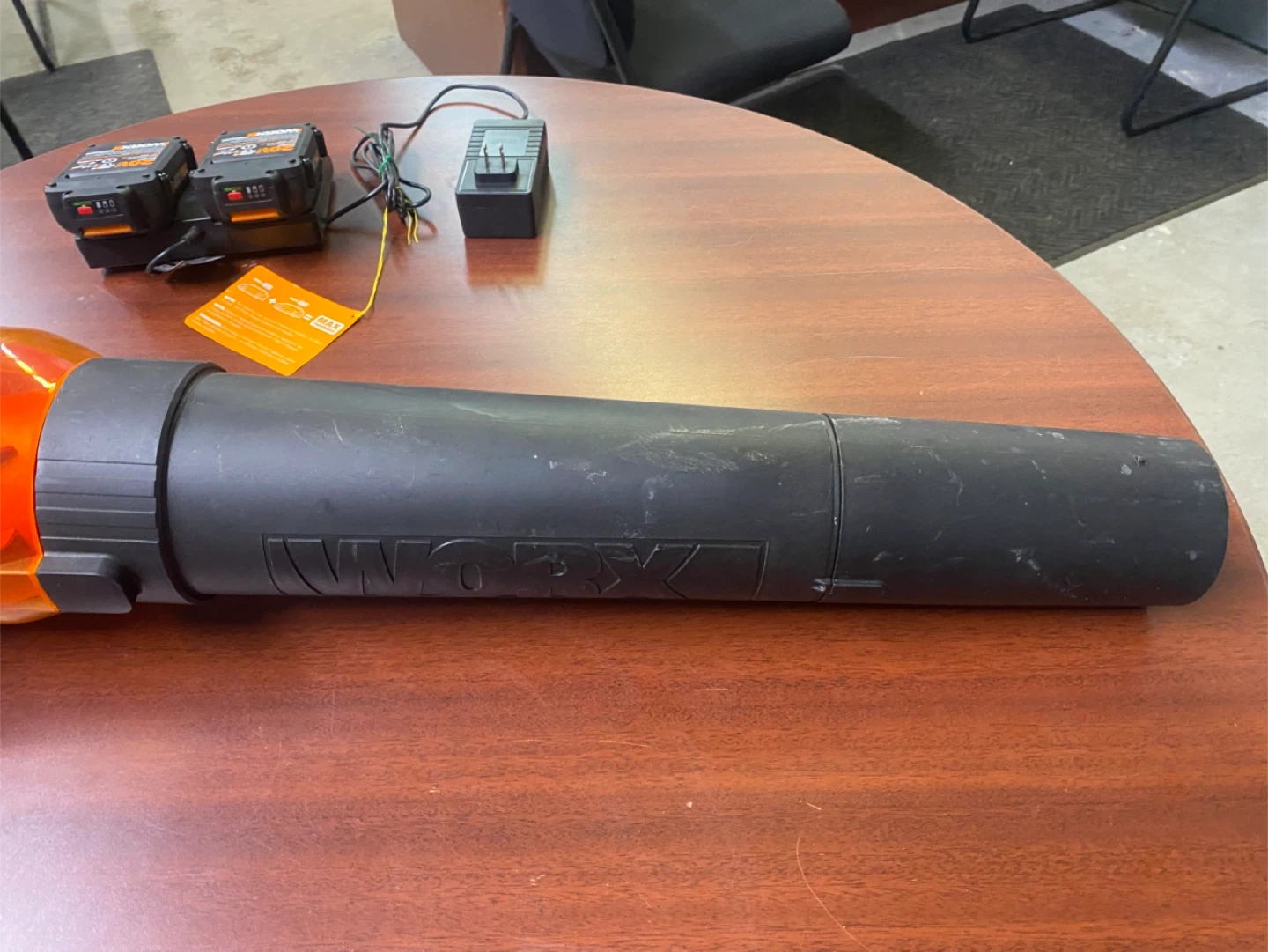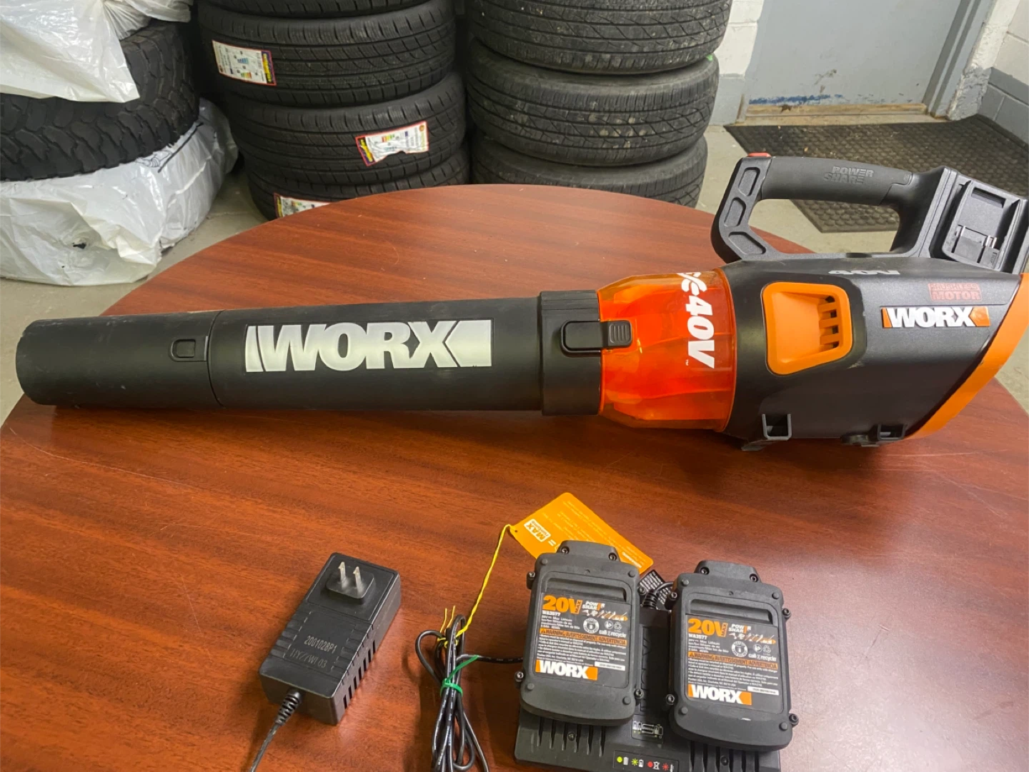 Get ready to tackle those leaves with this used WORX 40V Turbine Cordless Blower, which includes two 20V batteries and a charger! This tool is ready to get your lawn looking great. While it's seen some action, it's still in good working condition and ready to blow away the competition, or at least the leaves on your lawn.