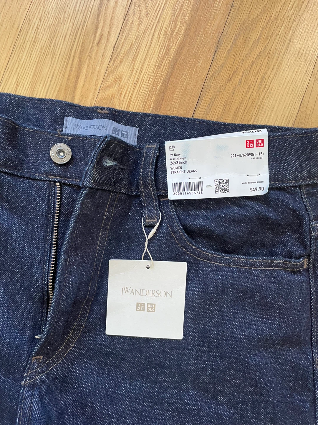 New Uniqlo JW Anderson collaboration straight fit jeans. Dark navy color. Size 26 waist, 31 inseam. (Got the pants hemmed so itβll be little shorter)