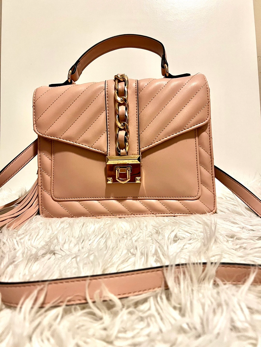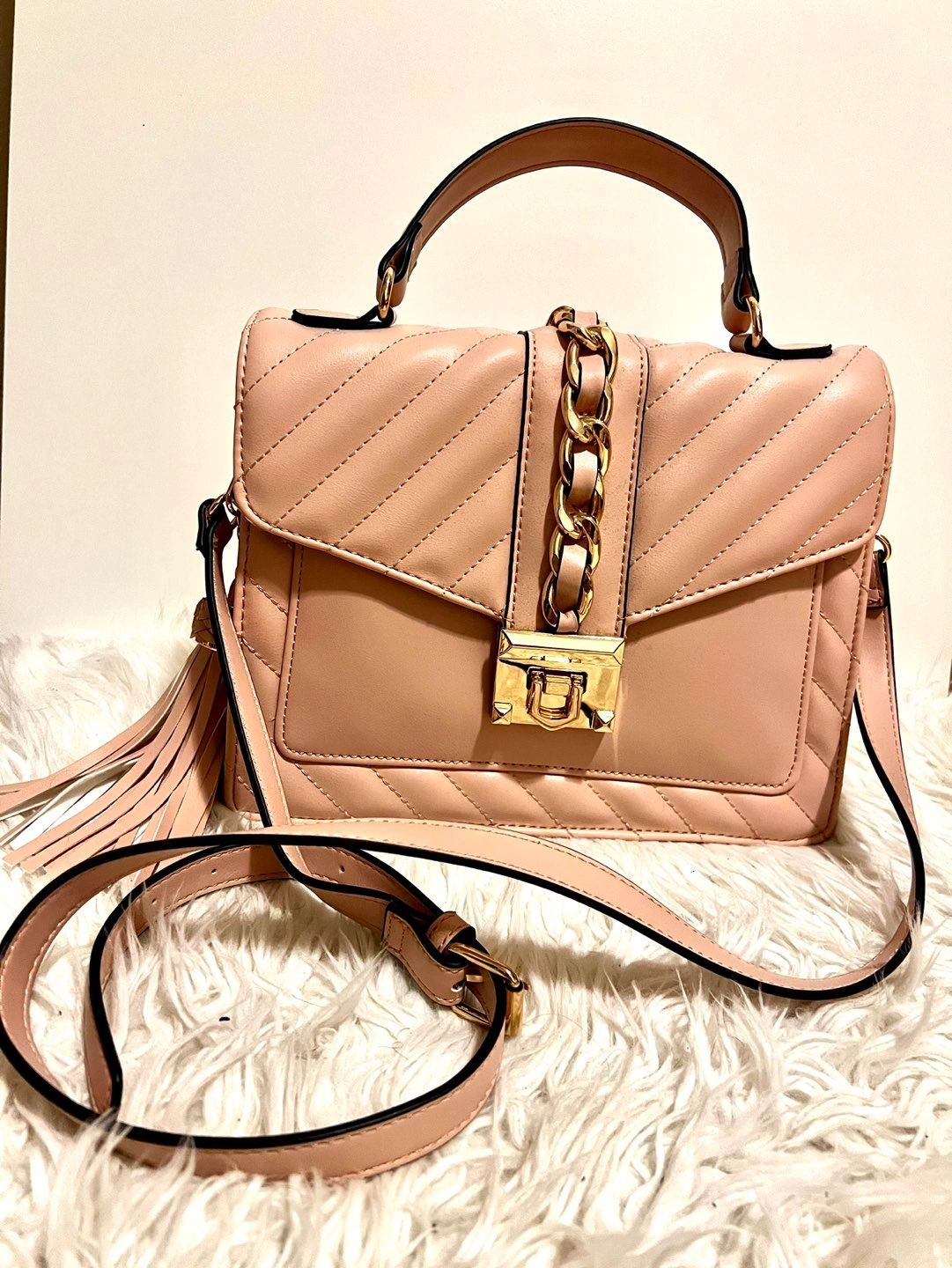 Very nice leather material, goes with everything since its a nude-pink colour.